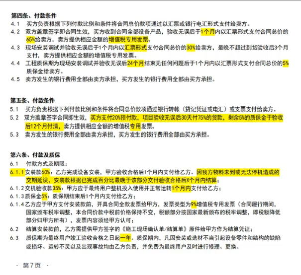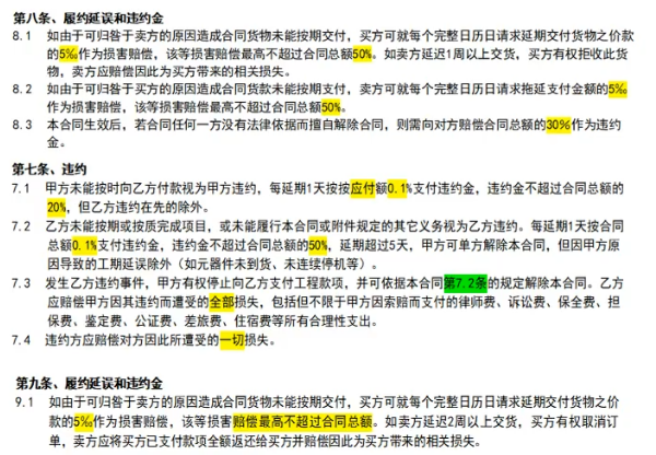 规定当付款/交付发生延误而不能完整交付时,双方应承担的责任和处理方式。由于其中对于对方的约束也能同等约束到自己,因此必须设定一个双方都能接受的合理值。