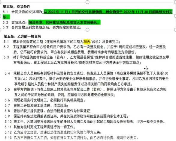 规定产品或服务交付的时间、地点、方式。是否分批交付,货到后的接货方式,买方是否负责卸货等等。卸货方面要主要看货的类型和重量,看需要多少空间,需不需要起乘机等。