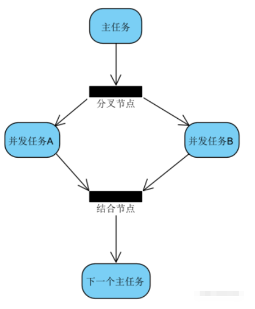 分叉节点是从线性流程进入并发过程中的过渡节点,它拥有一个进入控制流和多个离开控制流。不同于判断节点,分叉节点的所有离开流程都是并发关系,即分叉节点使执行过程进入多个动作并发的状态。