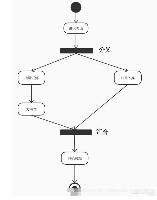 “分叉和汇合”像我们学数据库中“and”的关系,当进入考场后,老师检查证件,学生对号入座,他们同时在做一件事情
