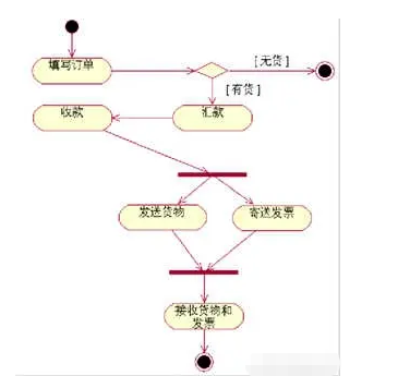 活动图中的“分叉与合并”很像我们平常生活中的两条路径,它描述了软件对象在不同的判断结果下所执行的不同动作。一条是“Yes”的路,一条是“No”的路,就看你的操作是要执行哪条路径,但最后终是会走到终点的