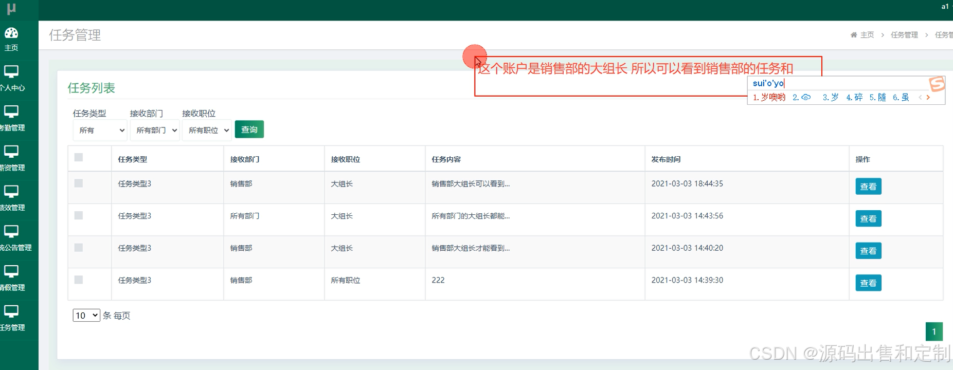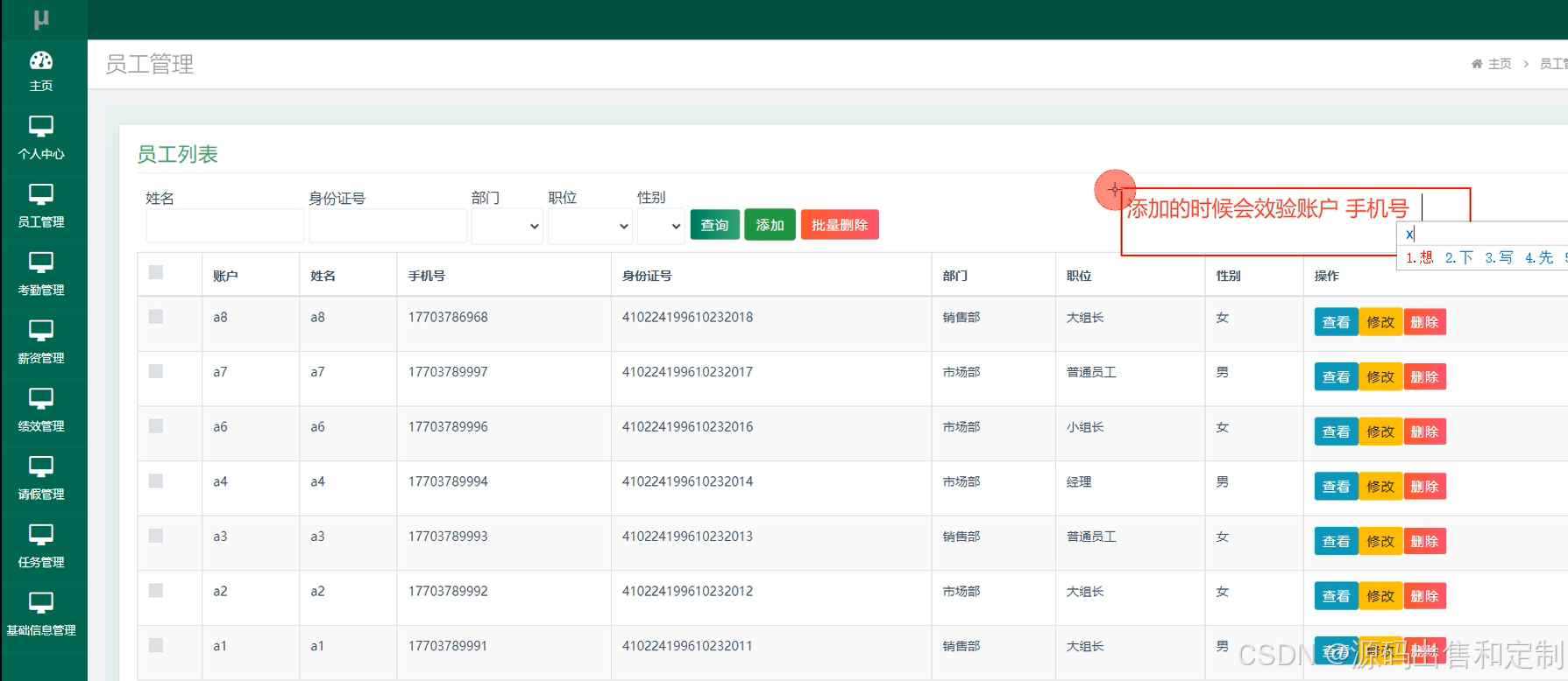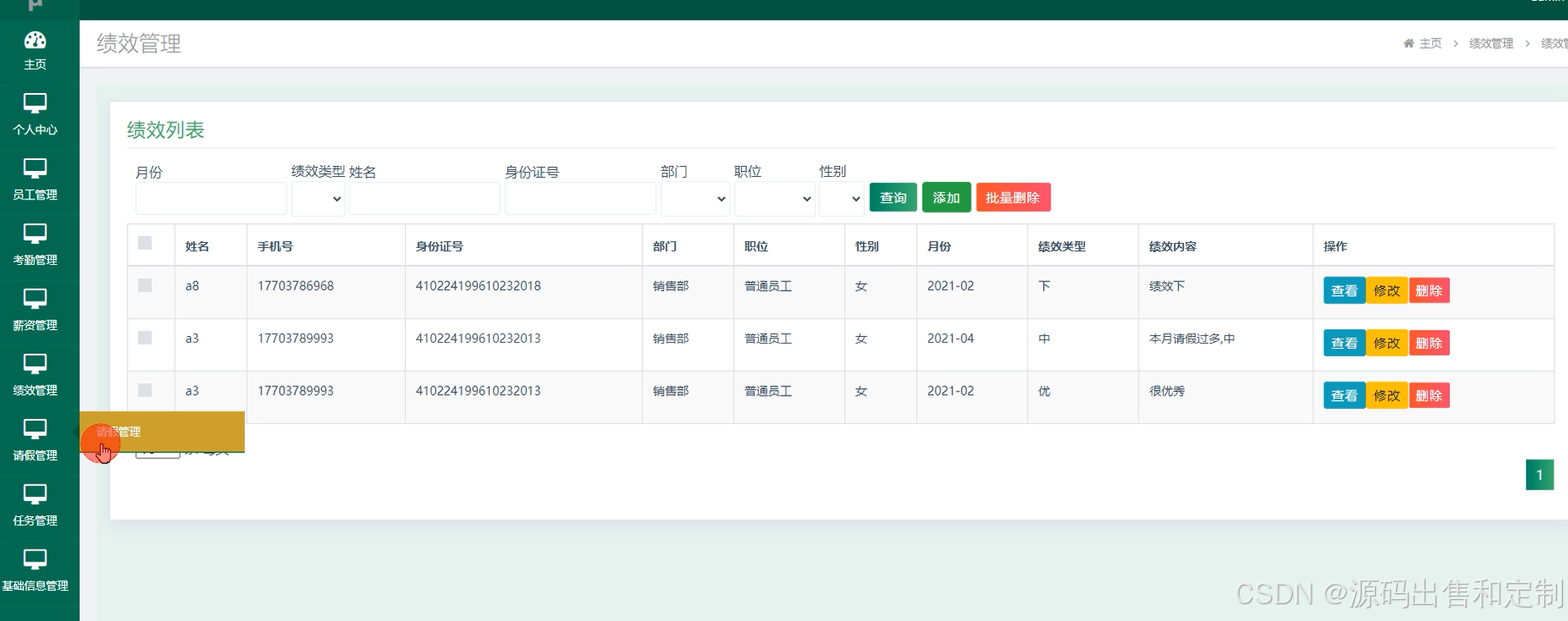 管理员主要负责添加和修改员工信息,添加和修改员工薪资,天界和修改员工绩效和请假和任务等。