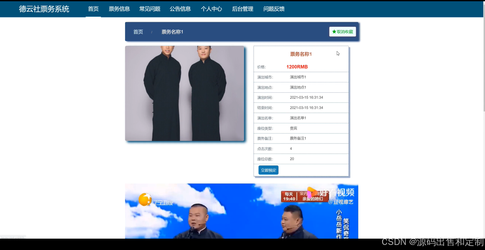 (附论文)基于ssm的德云社票务系统(063)
