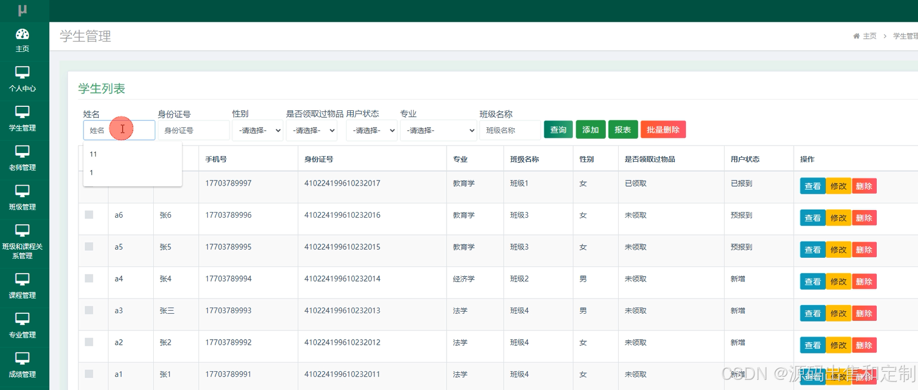 管理员管理班级和课程的关系,管理奖惩类型,课程和专业信息。