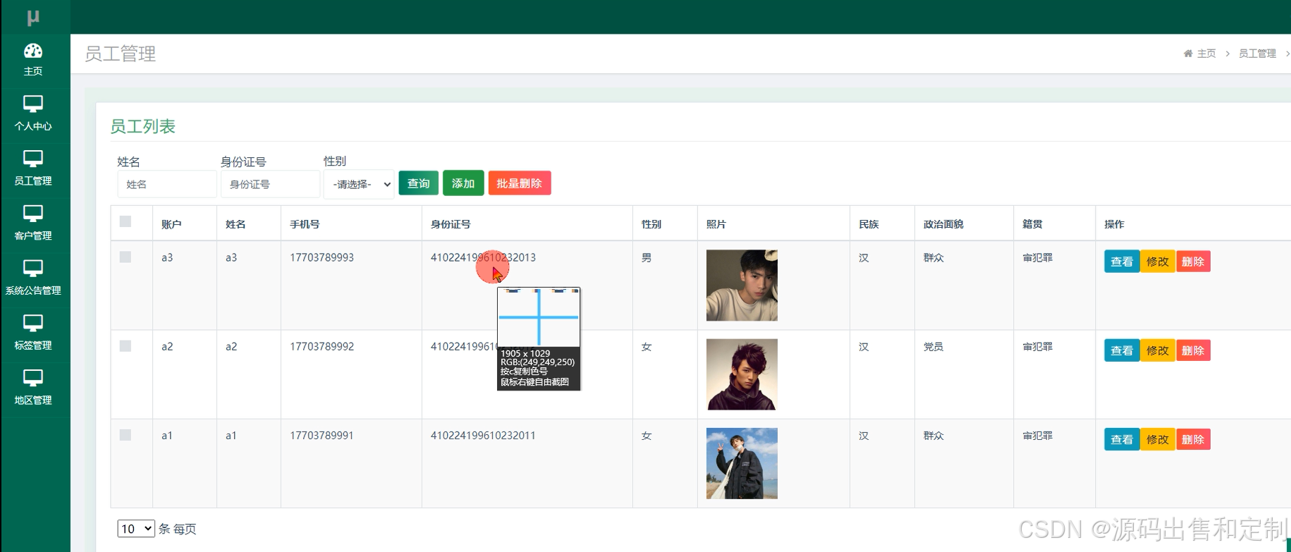 客户资料模块:在此模块中可以根据创建的客户表新增客户资料信息,也可以查询、修改等操作。