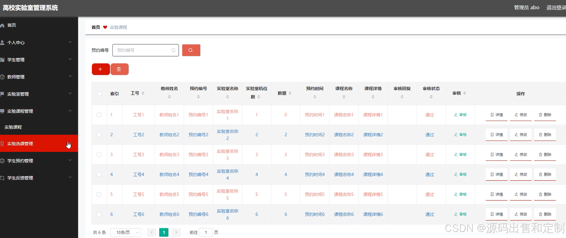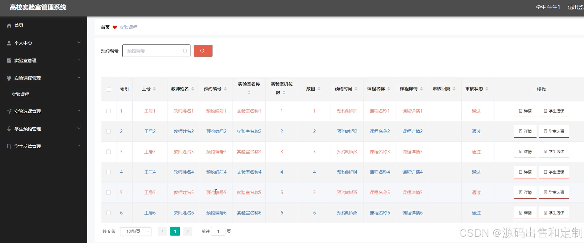 教师模块:1、注册(工号、密码、联系方式)、登录(不需验证码)2、用户信息查看与修改3、查看空闲实验室4、预约某个实验室5、查看实验课程日程安排(自己预约过的实验室信息、课程信息(包括上课时间、课程名))6、处理学生反馈信息(学生给教师留言的信息)