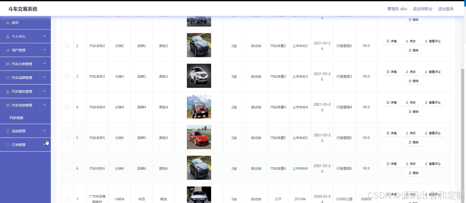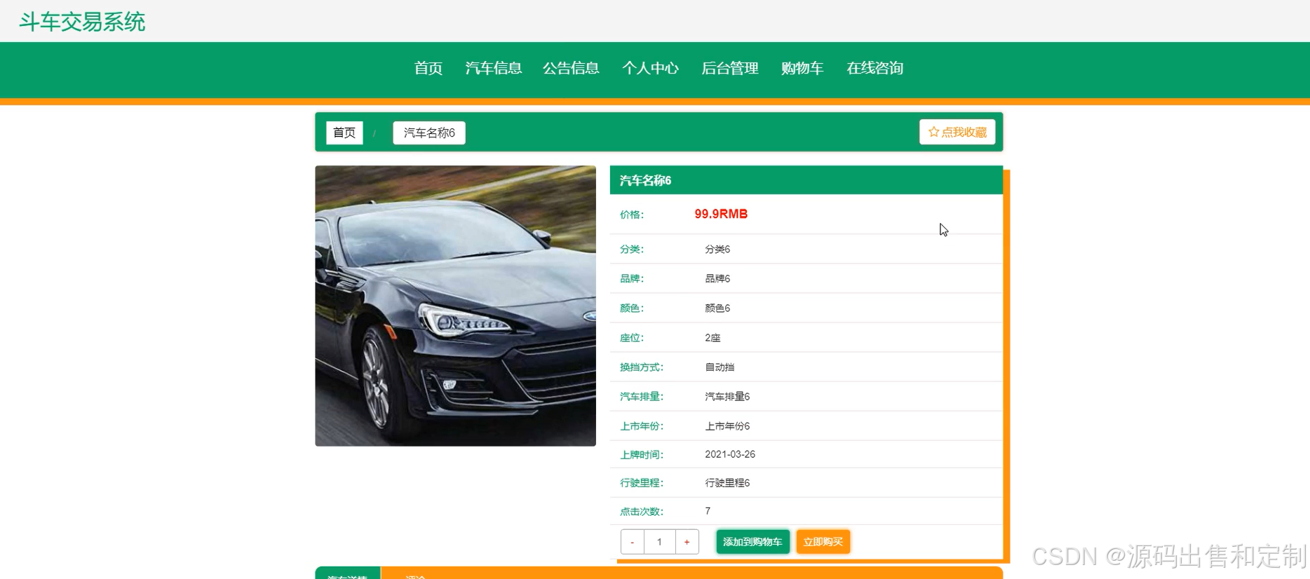 斗车交易系统,主要的模块包括管理员;个人中心、用户管理、汽车分类管理、汽车品牌管理、汽车颜色管理、汽车信息管理、系统管理、订单管理;用户前台;首页、汽车信息、公告信息、个人中心、后台管理、购物车、在线咨询;等功能。系统中管理员主要是为了安全有效地存储和管理各类信息,还可以对系统进行管理与更新维护等操作,并且对后台有相应的操作权限。
