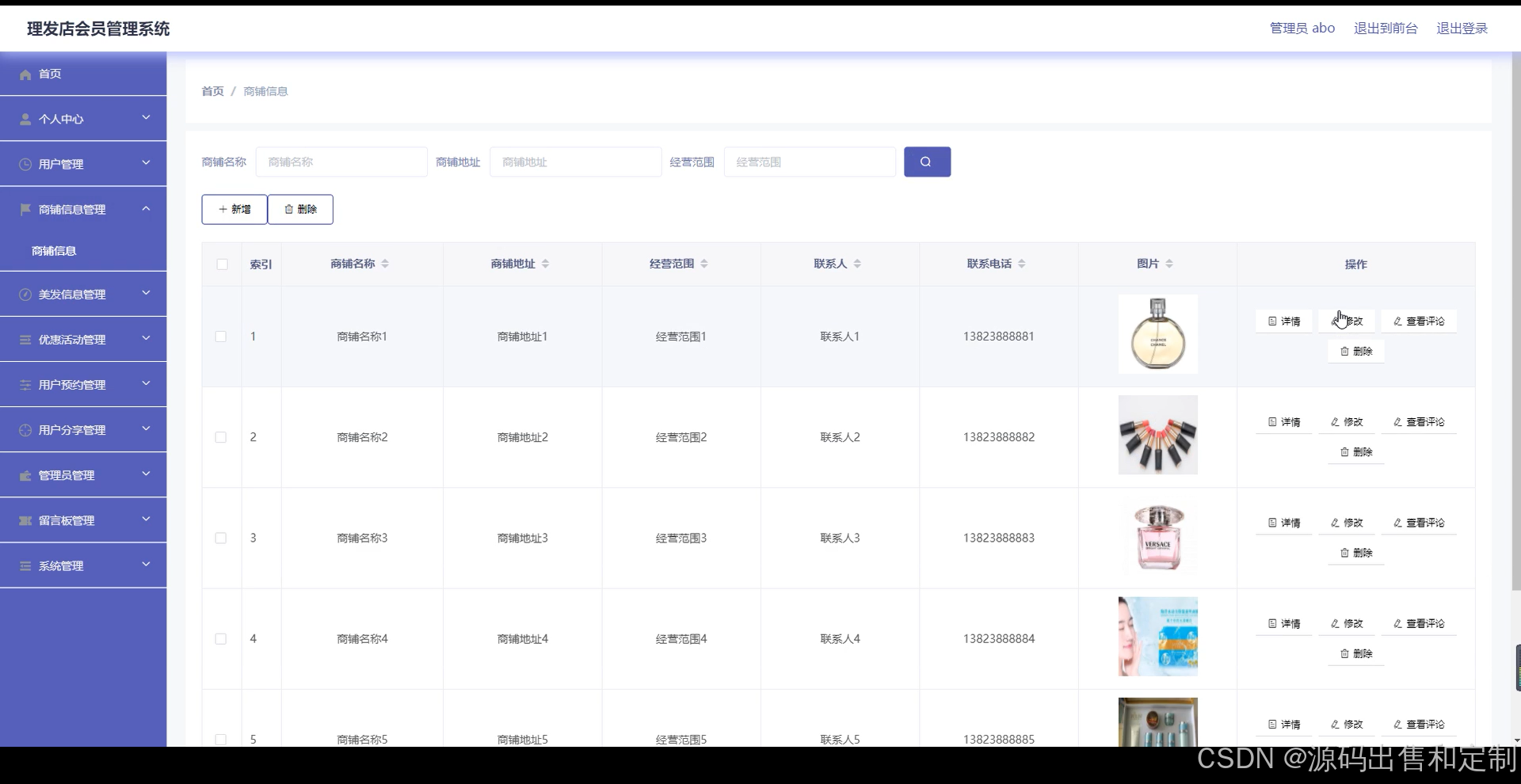 系统实现的功能包括商铺管理,美发管理,用户预约管理,用户分享管理,留言管理等功能。具体请看视频演示
