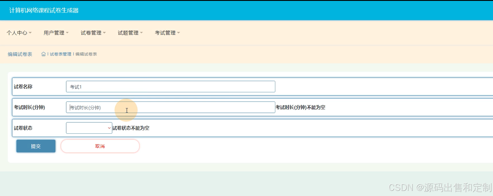 (附论文)基于ssm的计算机网络课程试卷生成器系统(099)