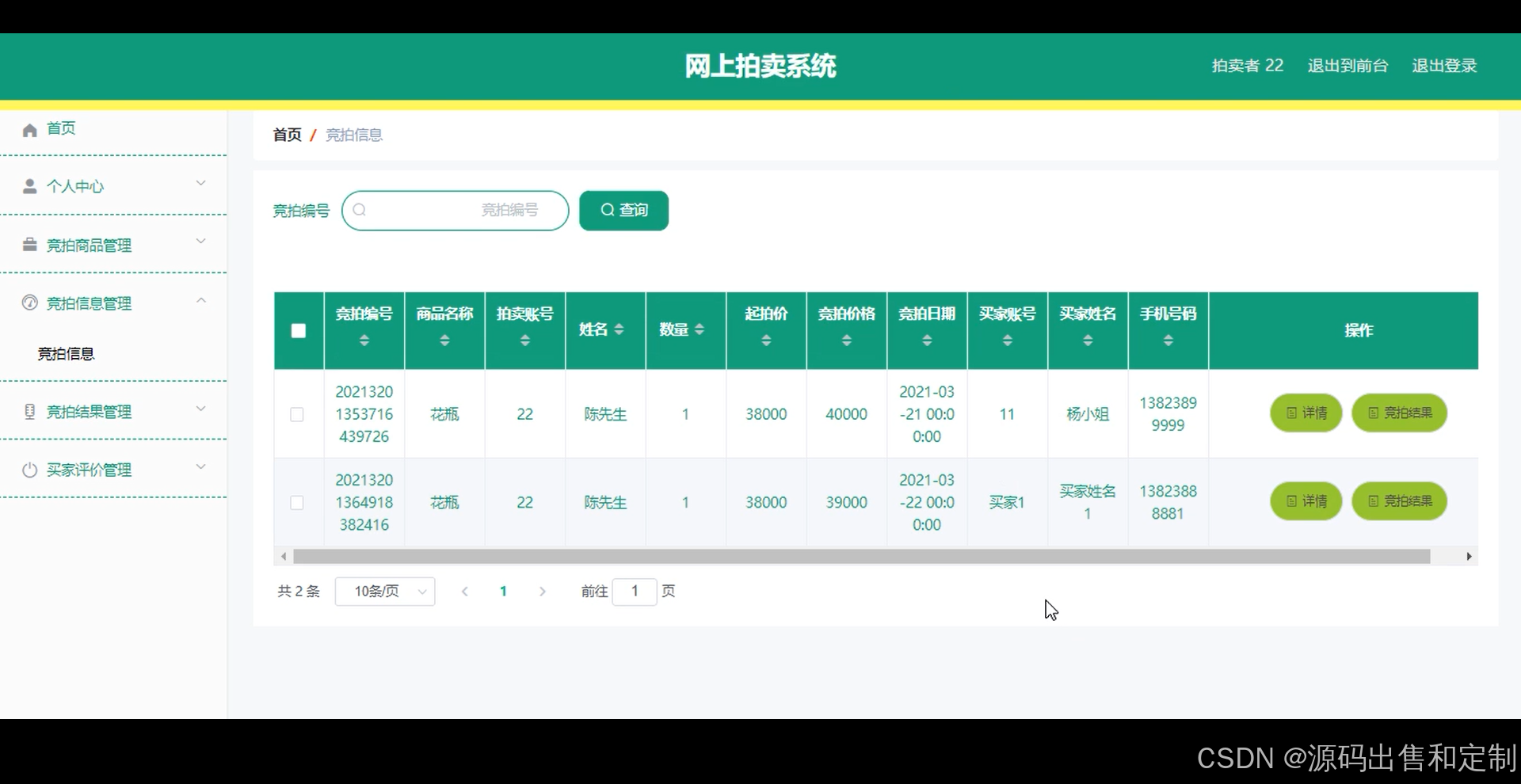 1.注册登录模块――实现拍卖者和购买者分别注册和登录,以获得拍卖者和购买者的详细信息,并赋予不同身份的不同的权限。