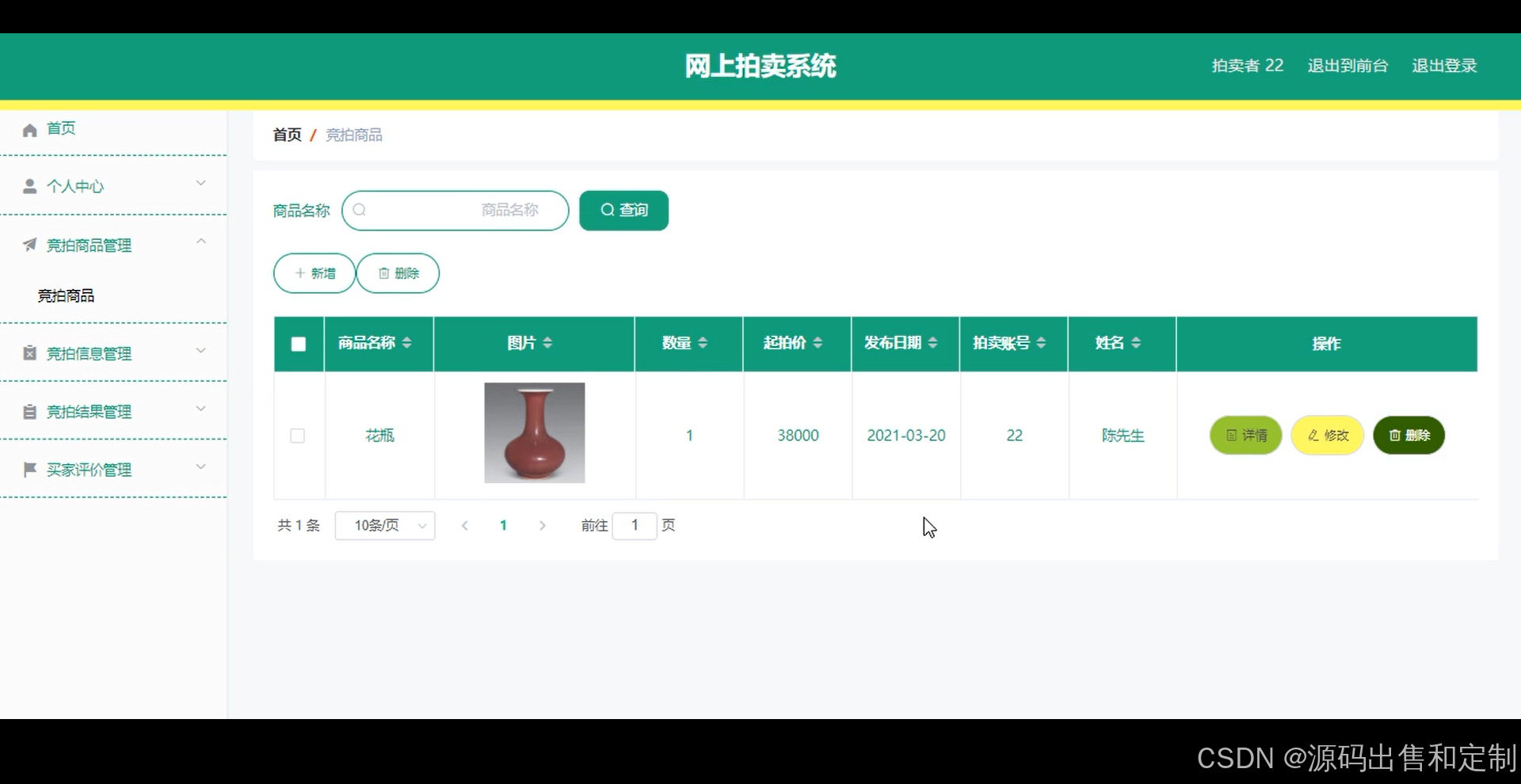 2.拍卖商品模块――拍卖者上传要拍卖商品的信息,包括:名字、描述、图片、数量。拍卖者可以查看自己拍卖的商品信息和已拍卖成功的商品信息。最终确定交易是否成功。