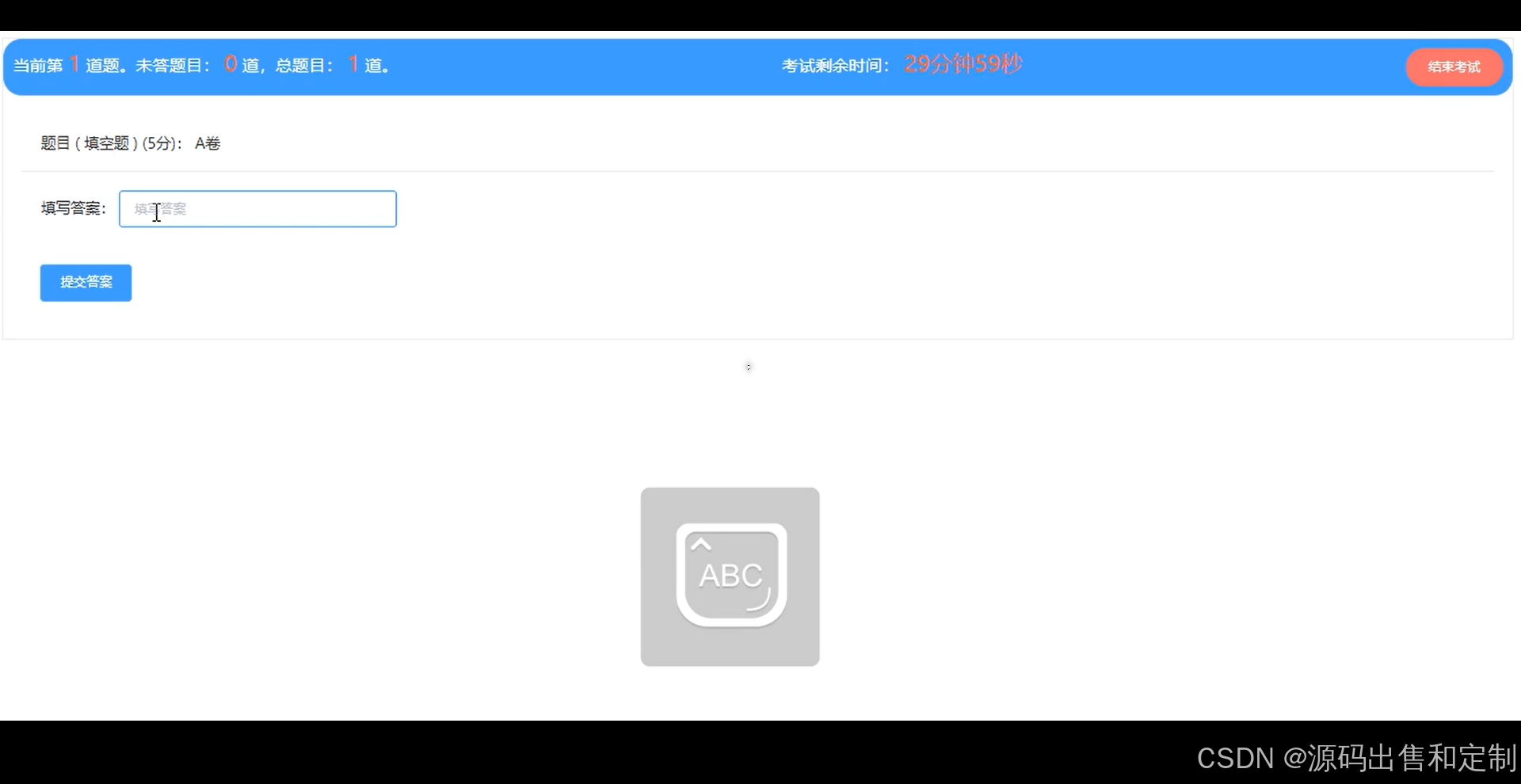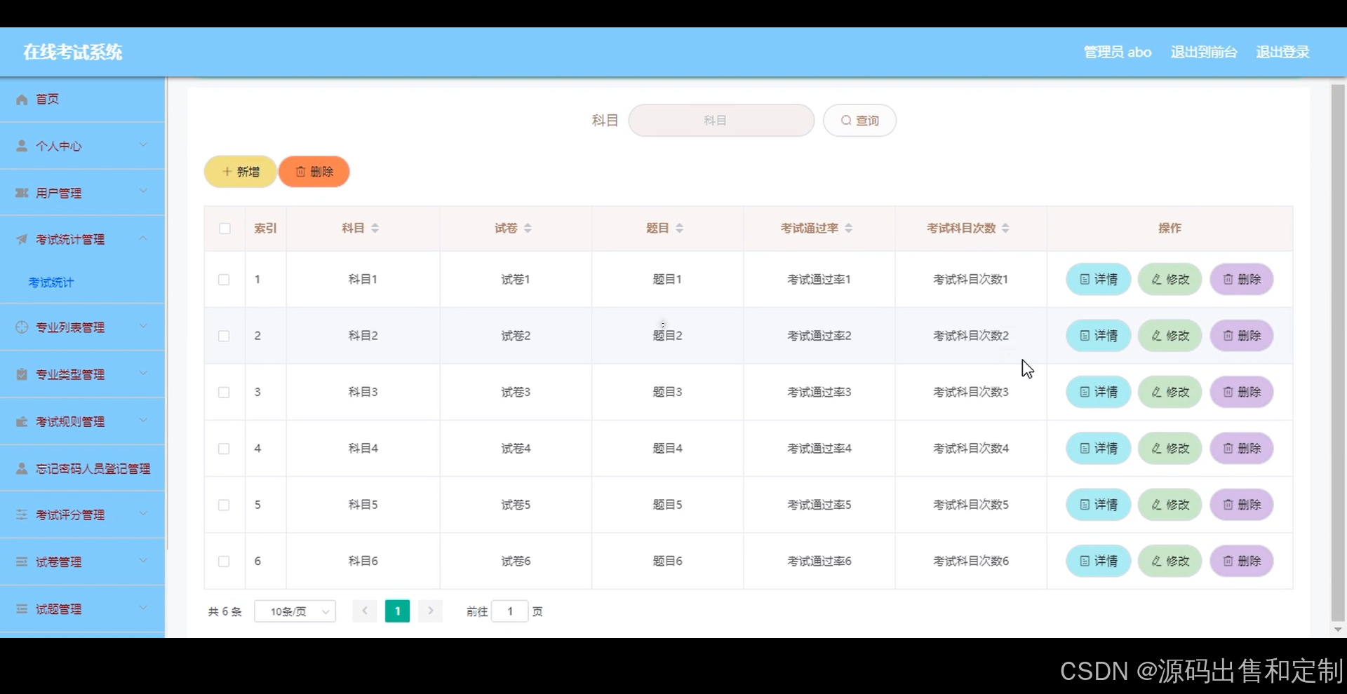 本基于Java Web技术的在线考试系统设计与实现有管理员和用户两个角色。管理员功能有个人中心,用户管理,考试统计管理,专业列表管理,专业类型管理,考试规则管理,忘记密码人员登记管理,考试评分管理,试卷管理,试题管理,系统管理,考试管理等。用户功能有,查看考试规则,试卷列表,考试资讯,参加考试,考试记录,错题本,考试评分等因而具有一定的实用性。具体请看视频演示