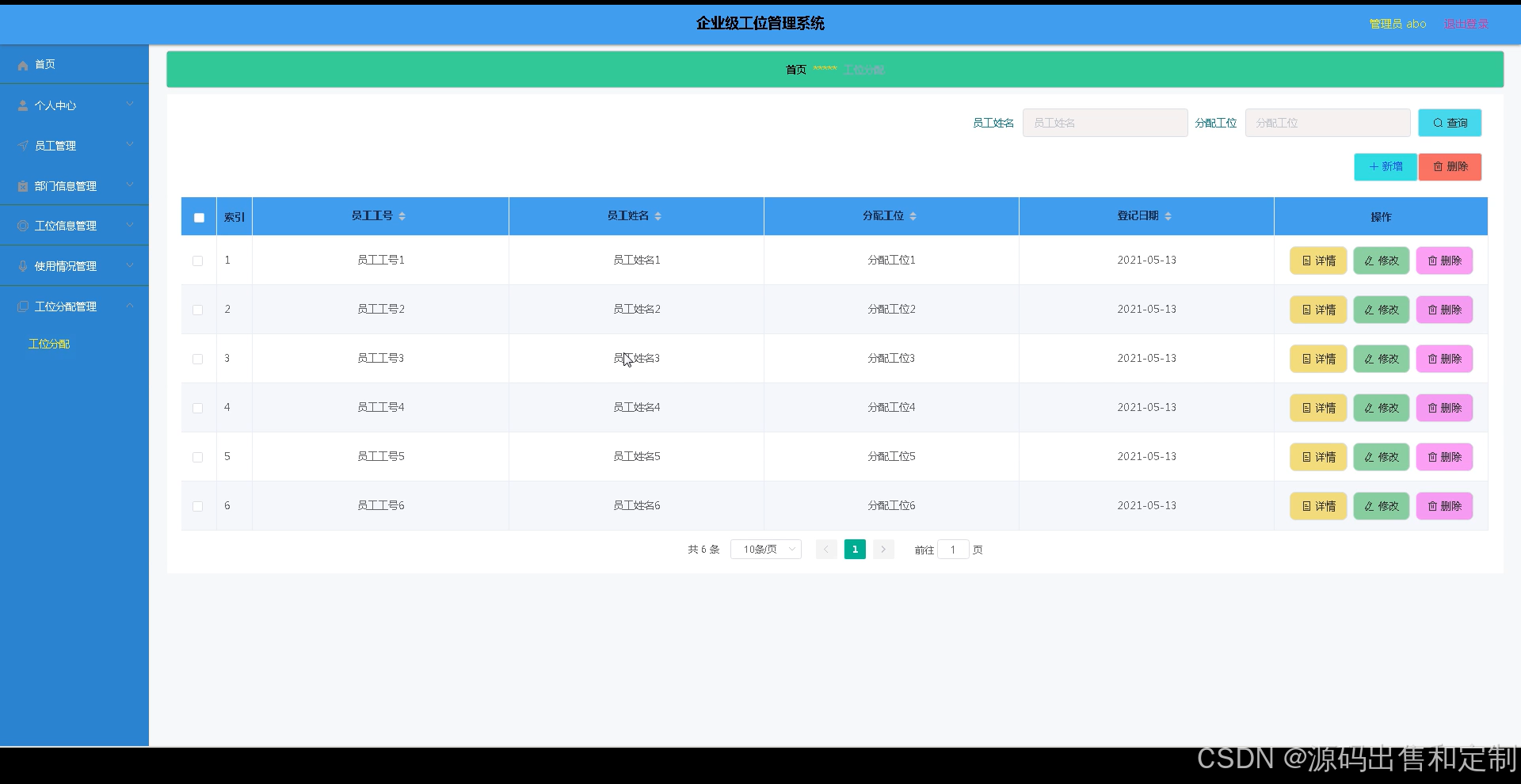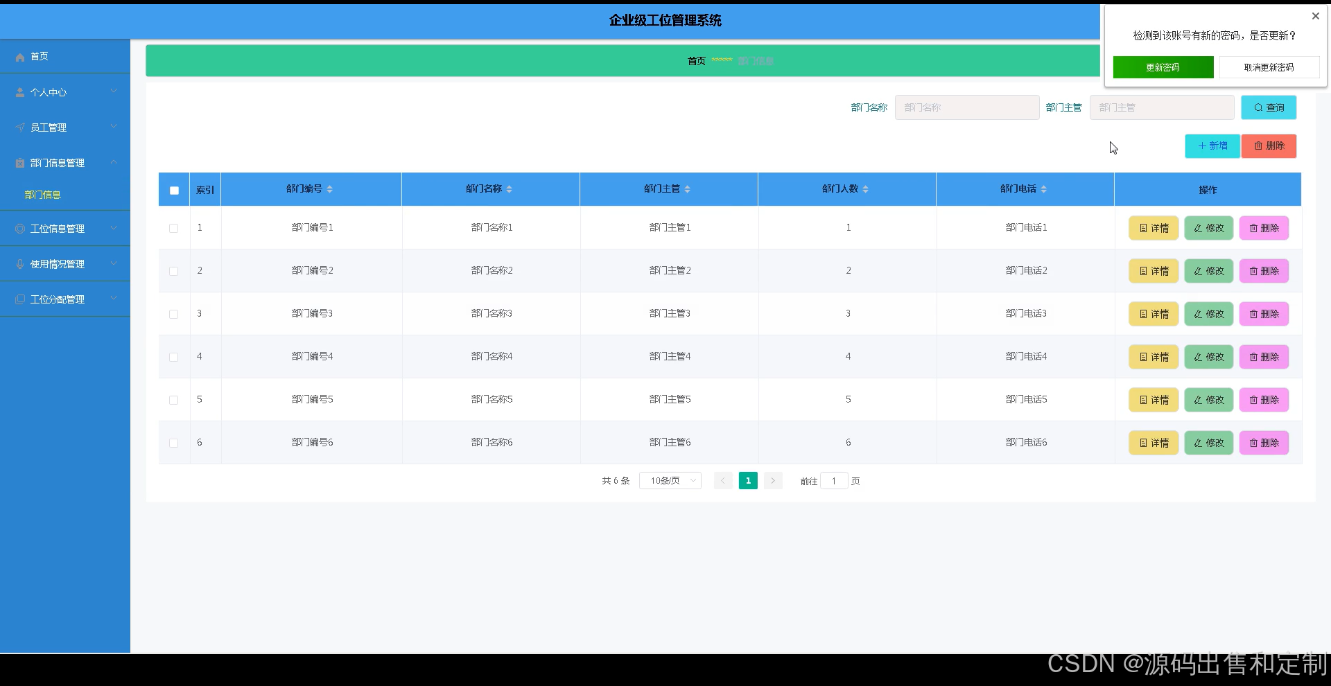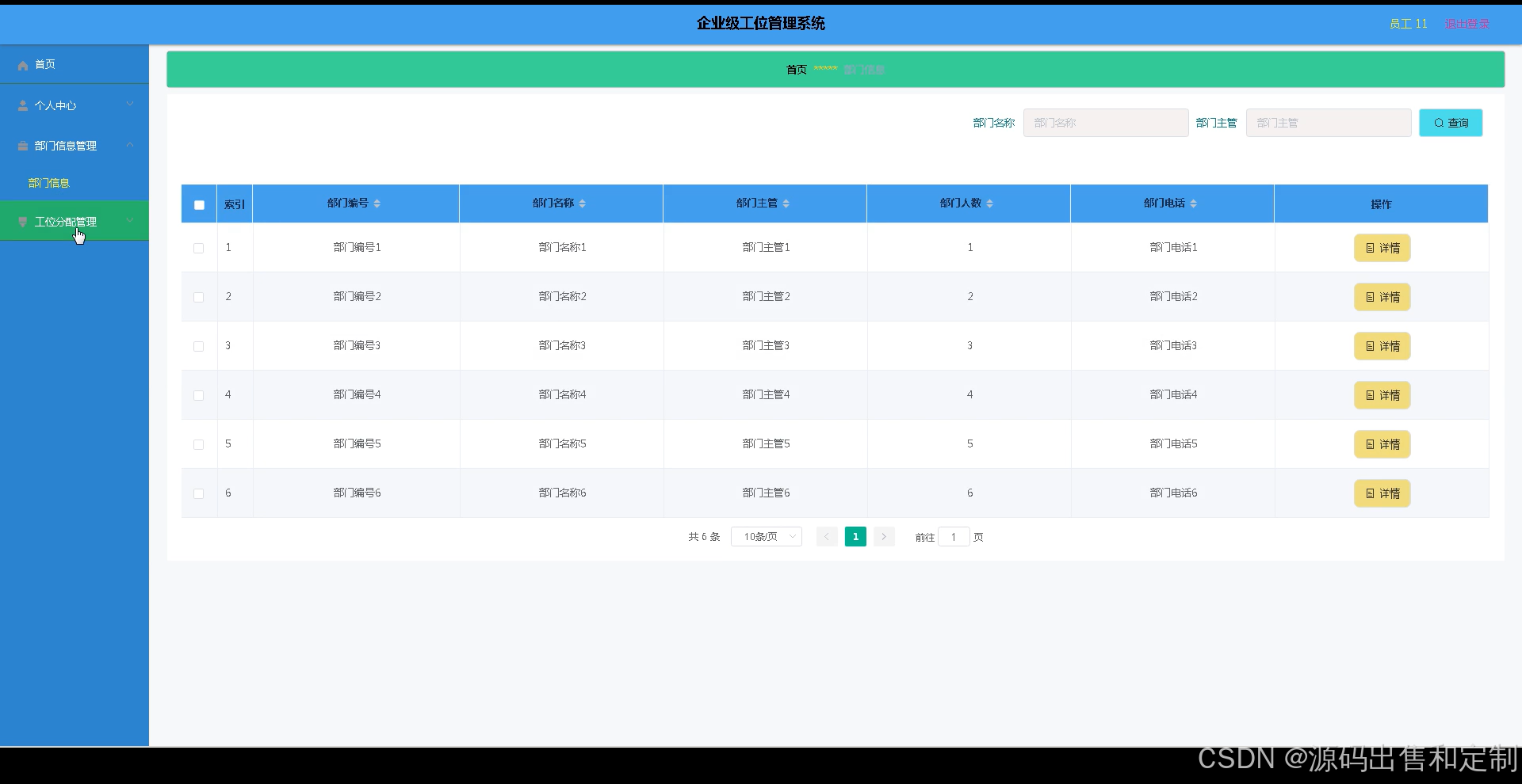本企业级工位管理系统管理员和员工。管理员功能有个人中心,部门信息管理,工位信息管理,使用情况管理,工位分配管理。员工可以查看个人中心,部门信息,和工位分配。具体请看视频演示