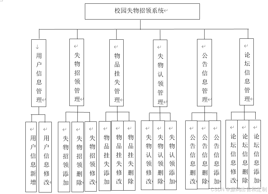 用户在没有注册之前,进入网站,用户的主要功能包括查看网站首页、论坛、公告信息、失物招领信息和失物挂失信息,用户在注册登录后进入网站,用户的主要功能包括失物招领申请、发布挂失信息、我的留言信息、个人信息管理、我的回复和评论。