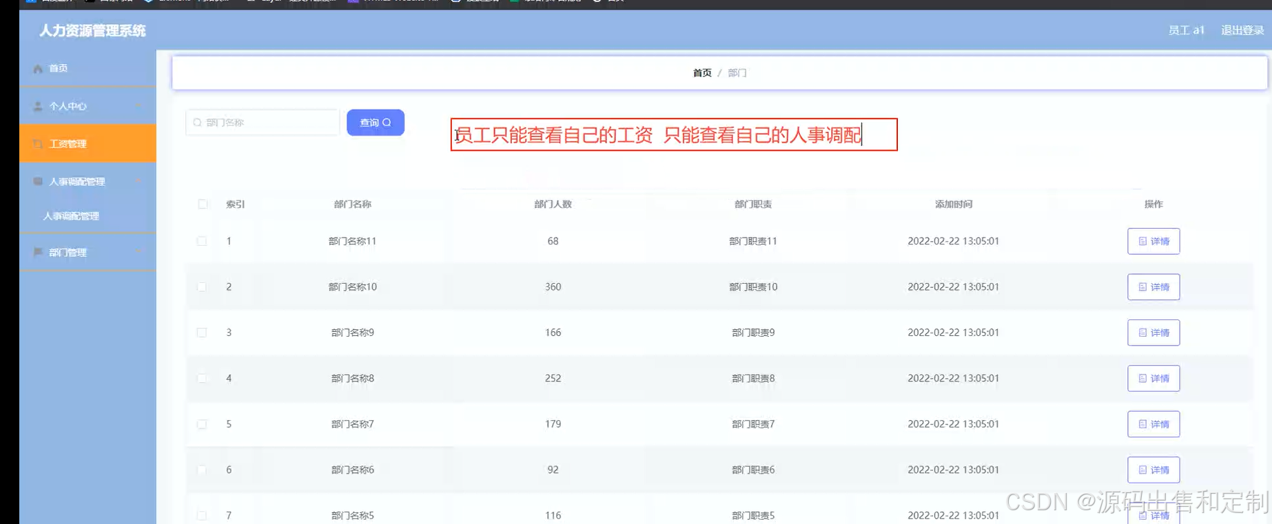 本人力资源管理系统分为管理员还有用户两个权限,管理员可以管理用户的基本信息内容,可以管理汽车信息以及汽车的租赁信息,能够与用户进行相互交流等操作,用户可以查看员工信息,可以查看应聘以及查看管理员回复信息等操作。具体请看视频演示
