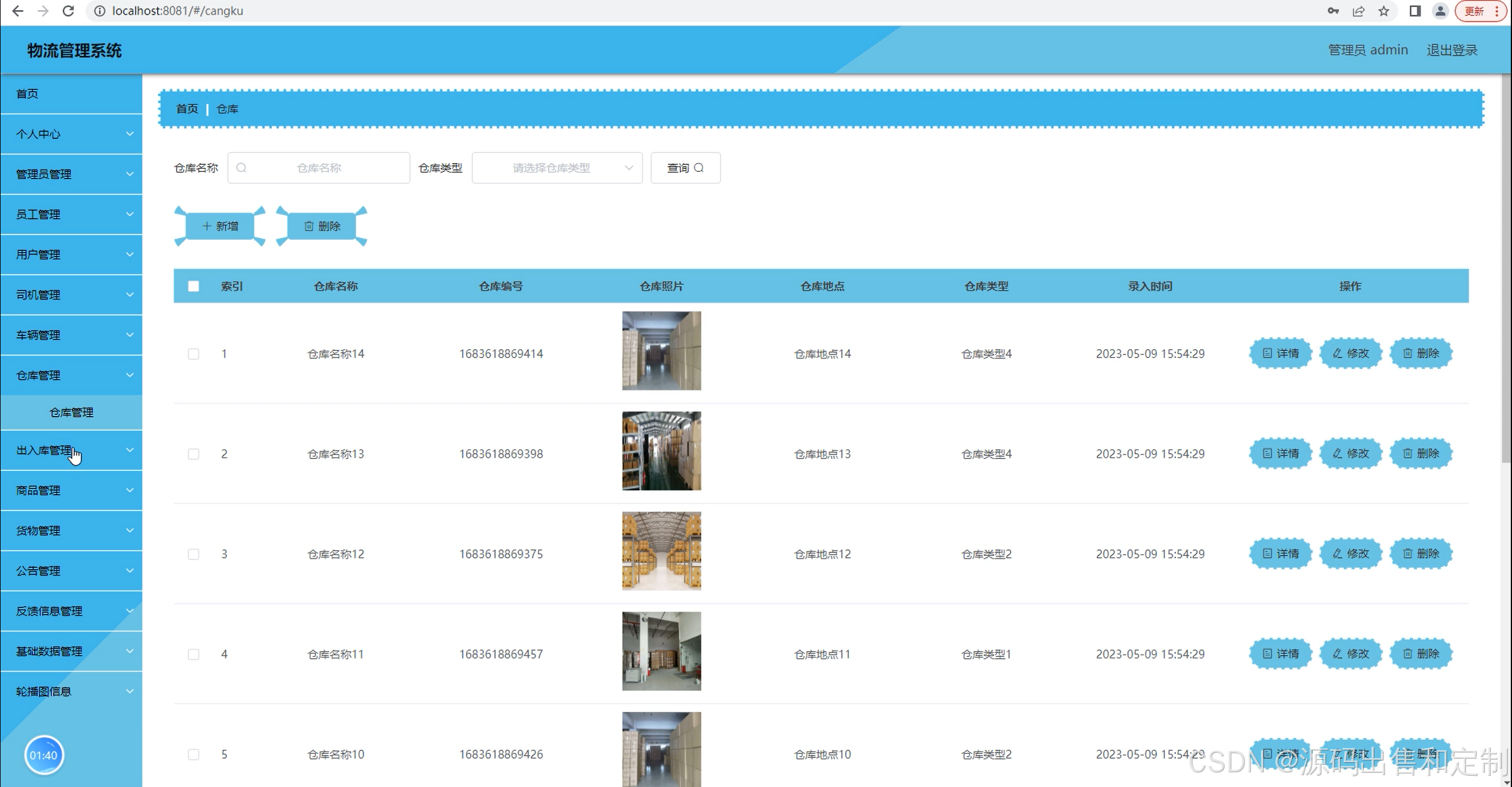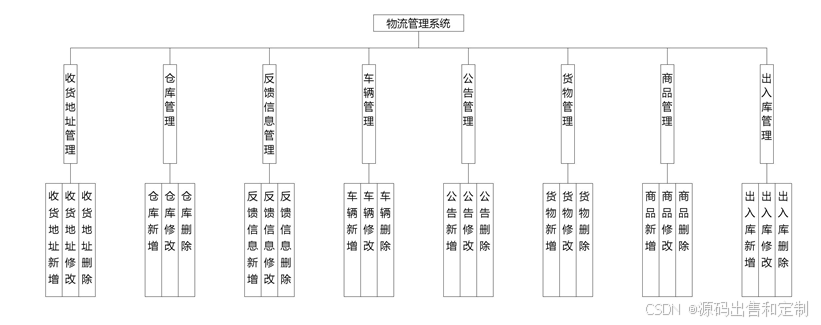 物流管理系统管理系统按照操作主体分为管理员和用户。管理员的功能包括收货地址管理、仓库管理、反馈信息管理、车辆管理、字典管理、公告管理、货物管理、商品管理、出入库管理、出入库详情管理、商品收藏管理、商品订单管理、司机管理、用户管理、员工管理、管理员管理。用户的功能等。具体请看视频演示