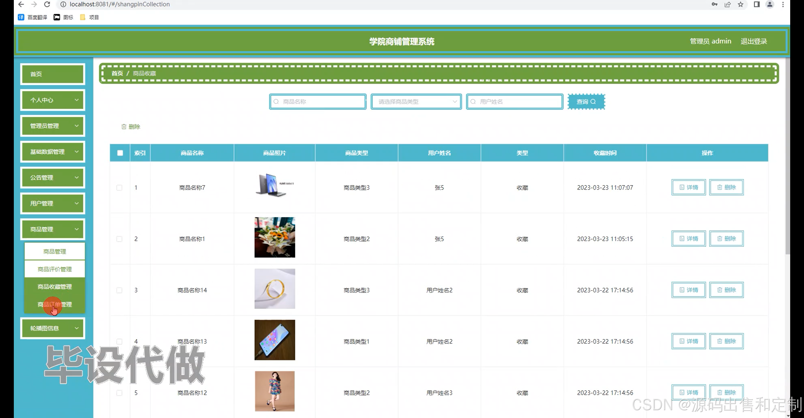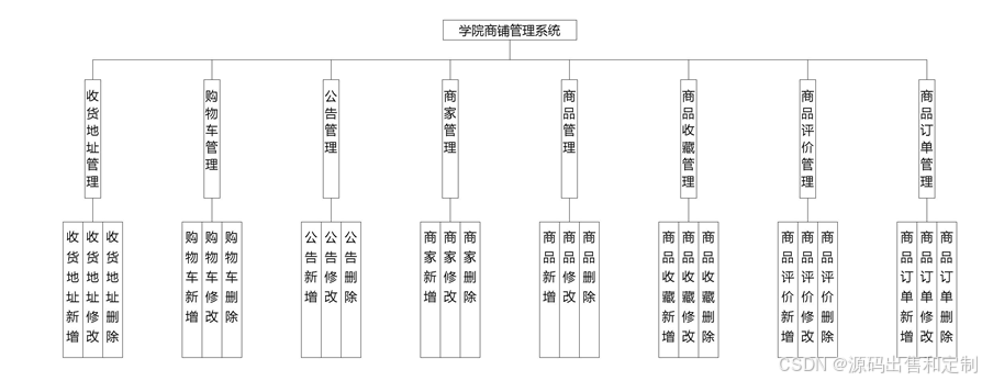 本次开发的学院商铺管理系统实现了收货地址管理、购物车管理、字典管理、公告管理、商家管理、商品管理、商品收藏管理、商品评价管理、商品订单管理、用户管理、管理员管理等功能。具体请看视频演示