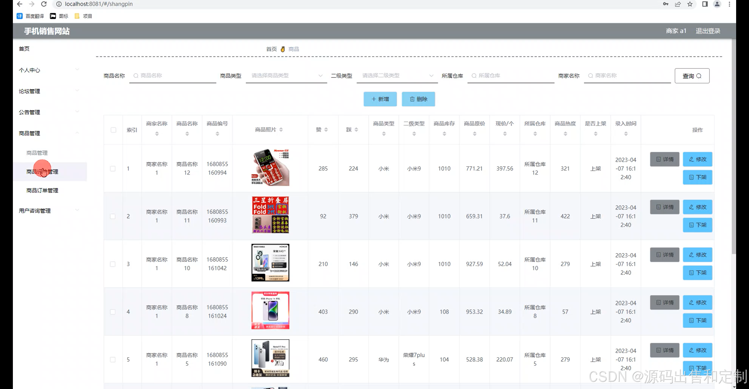 实现了收货地址管理、购物车管理、字典管理、论坛管理、公告管理、商家管理、商品管理、用户咨询管理、商品收藏管理、商品评价管理、商品订单管理、用户管理、管理员管理等功能。具体请看视频演示