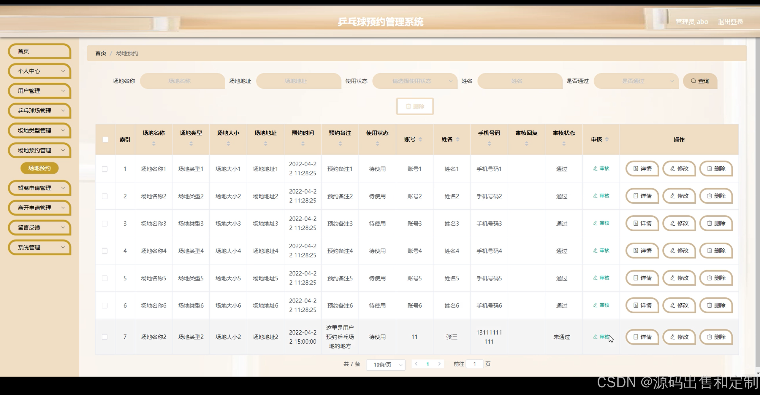 基于Springboot和Vue的乒乓球预约管理系统(657)