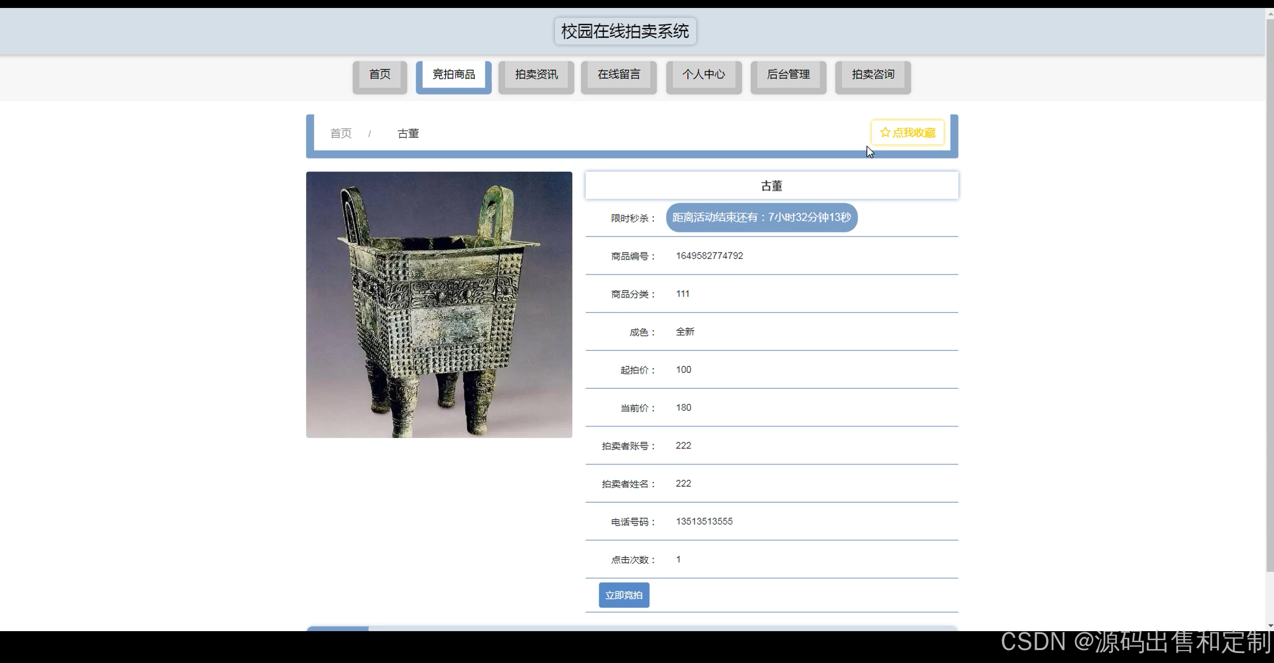 基于Springboot和Vue的校园在线拍卖系统(660)