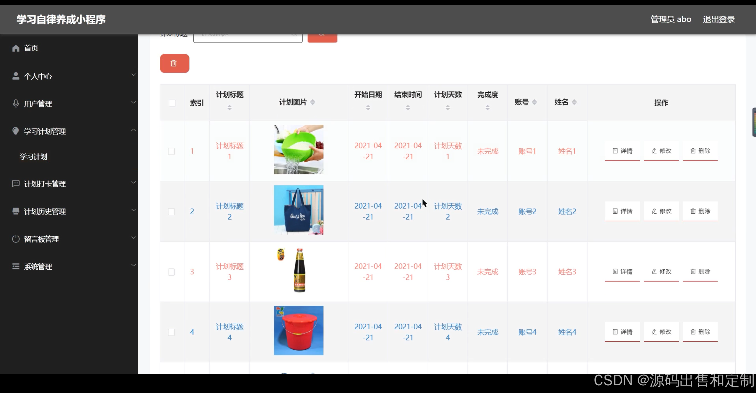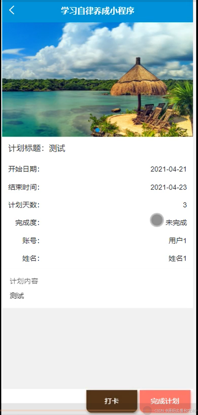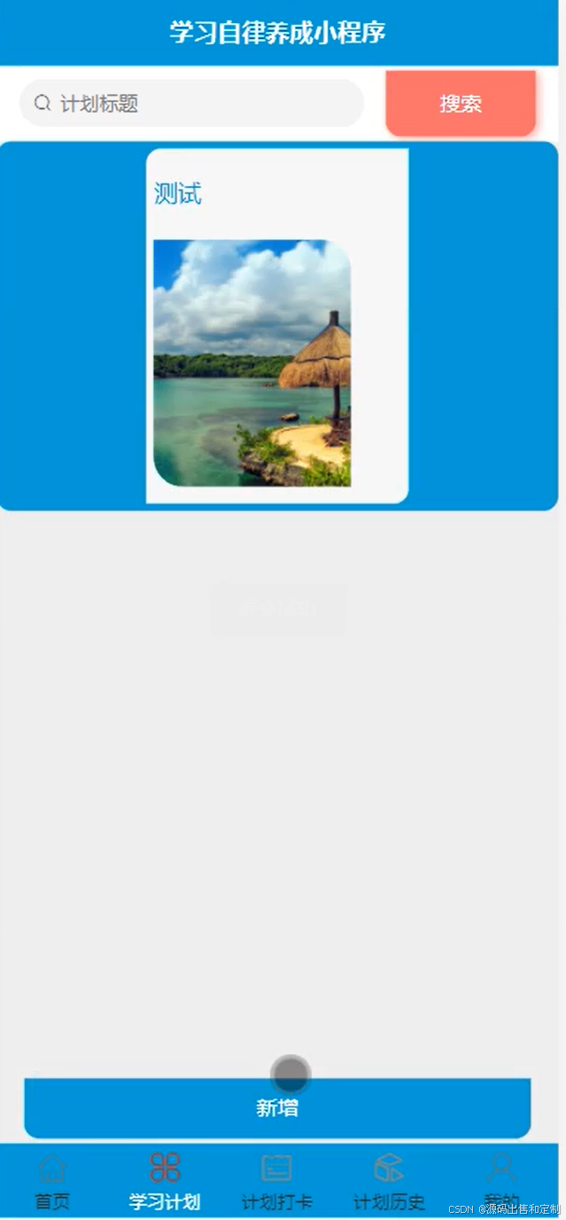 本微信学习自律养成小程序的设计与实现有管理员和用户两个角色。管理员功能有个人中心,用户管理,学习计划管理,计划打卡管理,计划历史管理,留言板管理,系统管理等。用户功能有注册登录,学习计划,计划打卡,计划历史,留言板管理,留言板等。具体请看视频演示