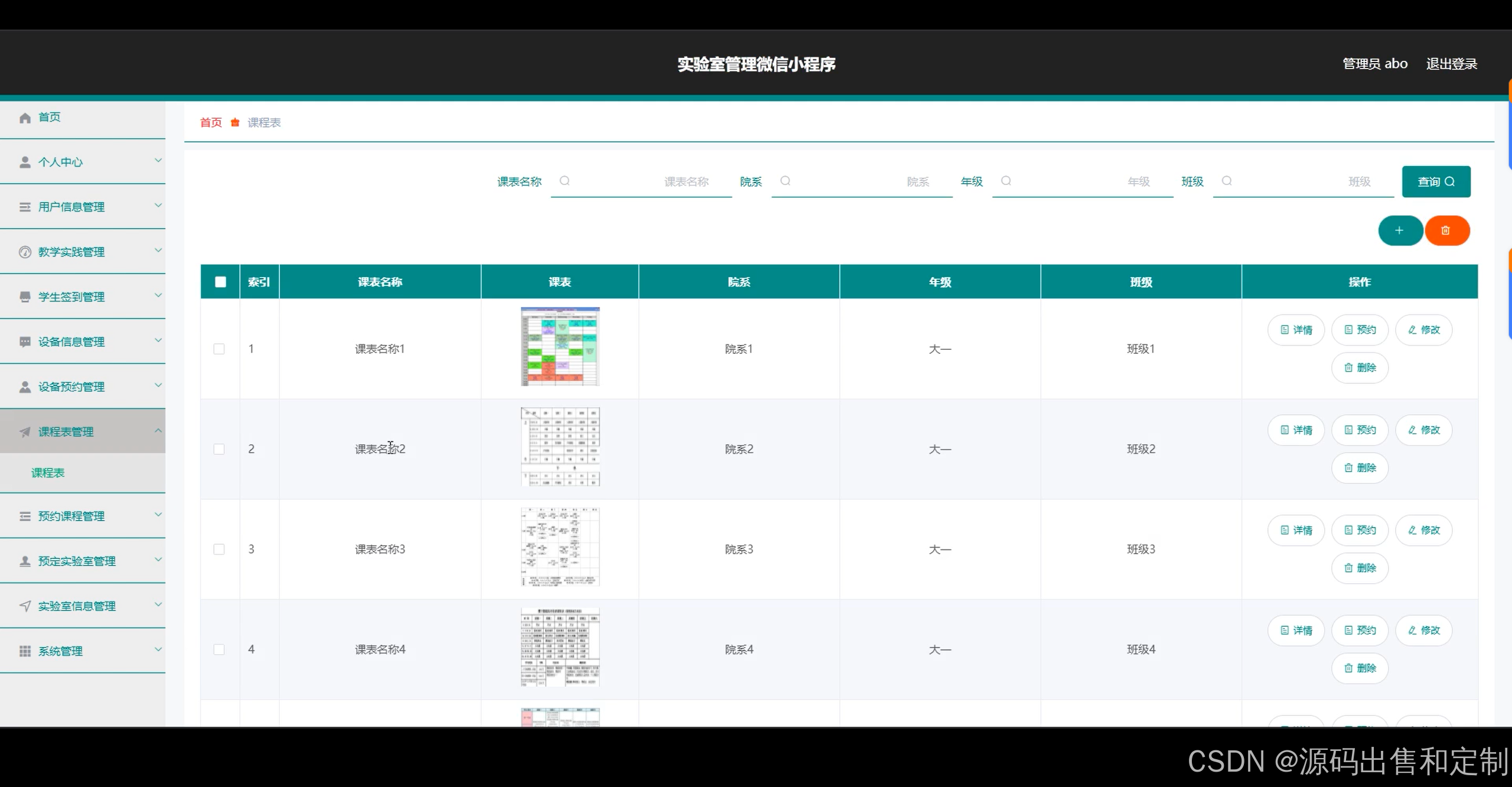 本实验室管理微信小程序管理员和用户。管理员功能有个人中心,用户信息管理,教学实践管理,学生签到管理,设备信息管理,设备预约管理,课程表管理,预约课程管理,预定实验室管理,实验室信息管理,系统管理。用户可以查看设备信息,课程表信息,进行签到和实验室预约。具体请看视频演示