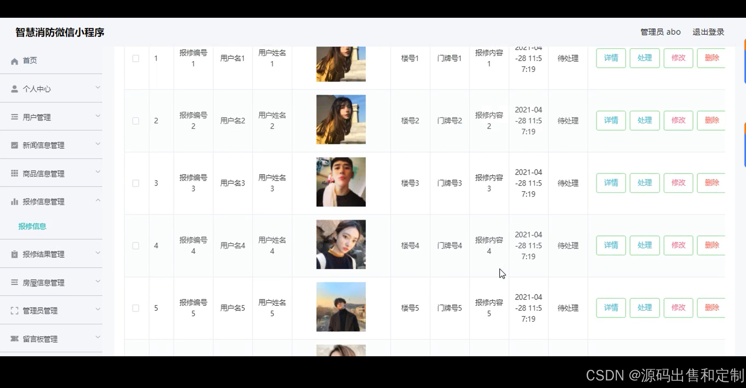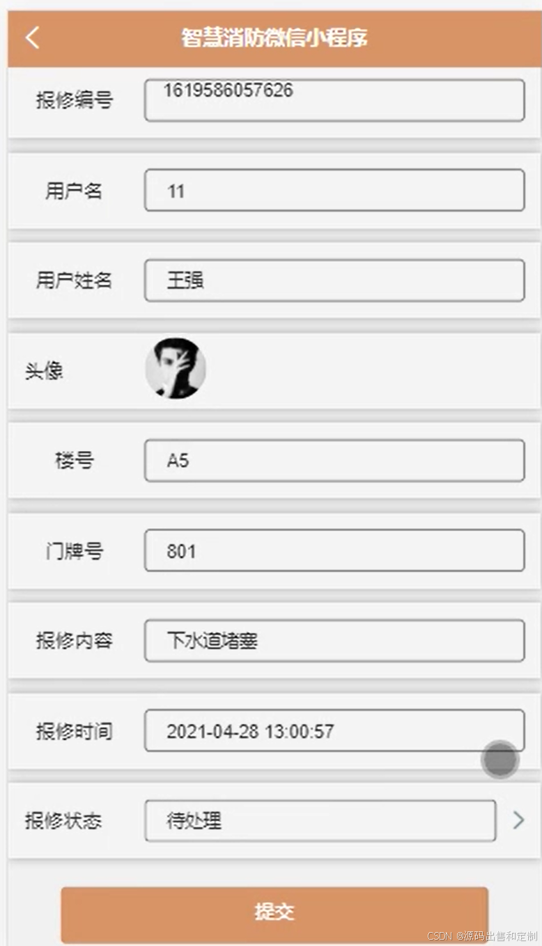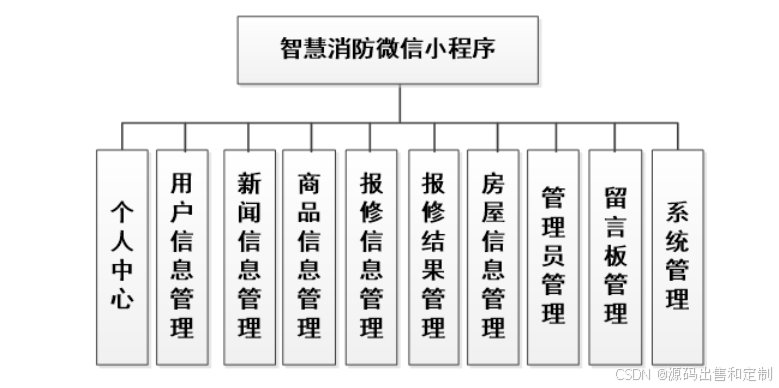 本智慧消防微信小程序管理员和用户。管理员功能有个人中心,用户管理,新闻信息管理,商品信息管理,报修信息管理,报修结果管理,房屋信息管理,管理员管理,留言板管理,系统管理等。用户可以注册登录,进行报修和商品购买。具体请看视频演示