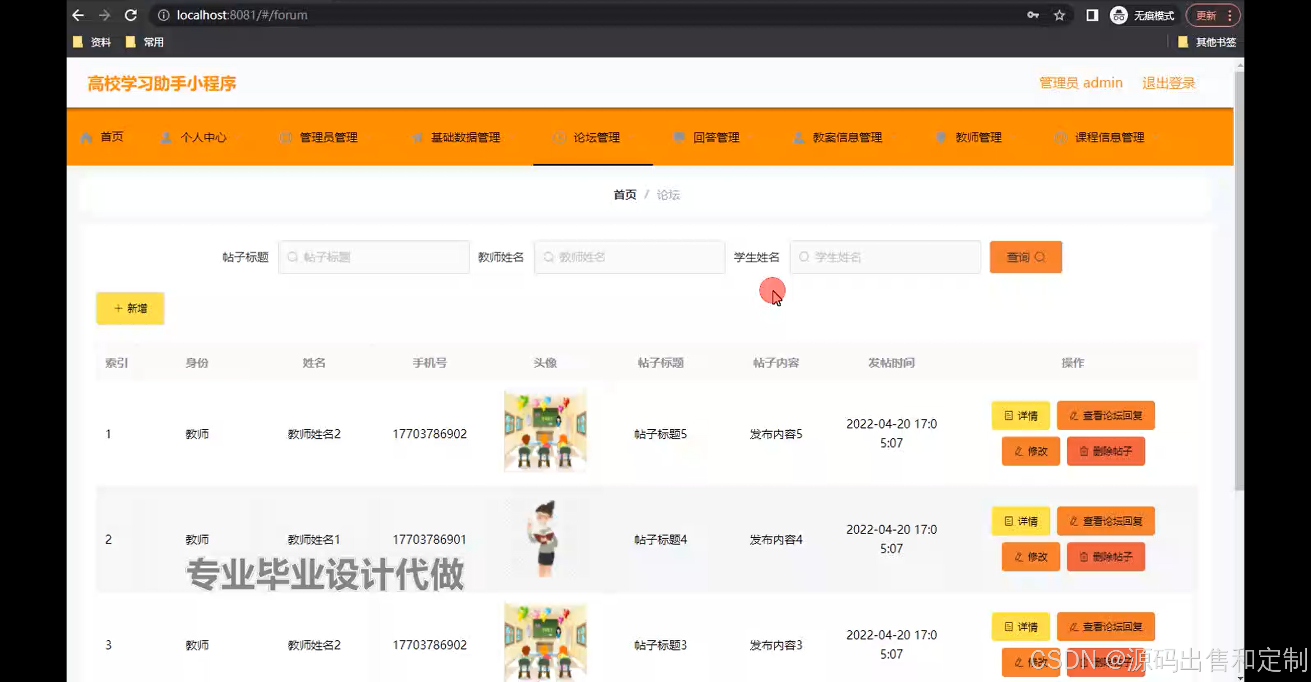 (附论文)小程序基于SSM的高校学习助手系统(194)(微信端录像)