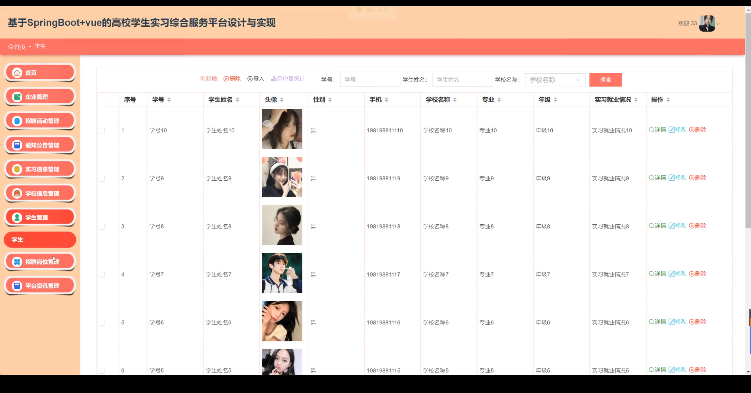 Vue3+Springboot的高校学生实习综合服务平台系统