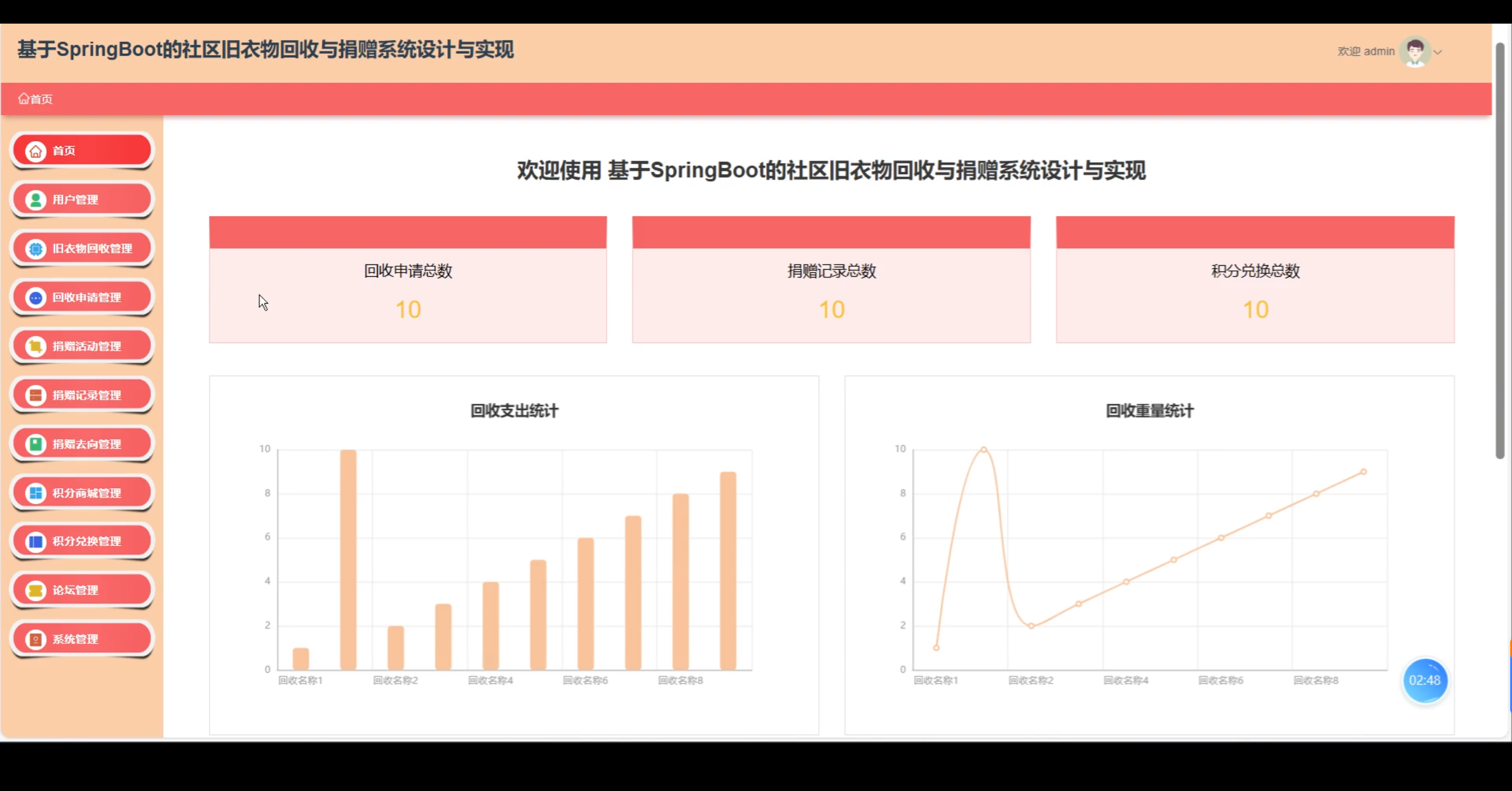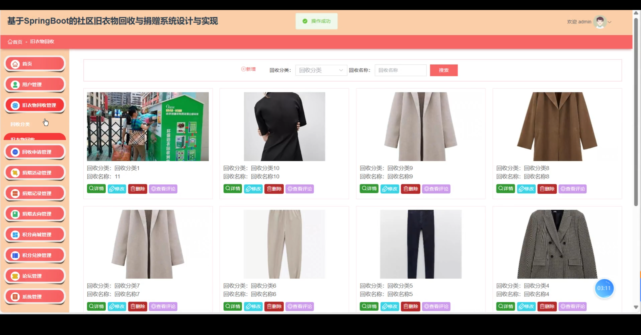 Vue3+Springboot的社区旧衣物回收与捐赠系统