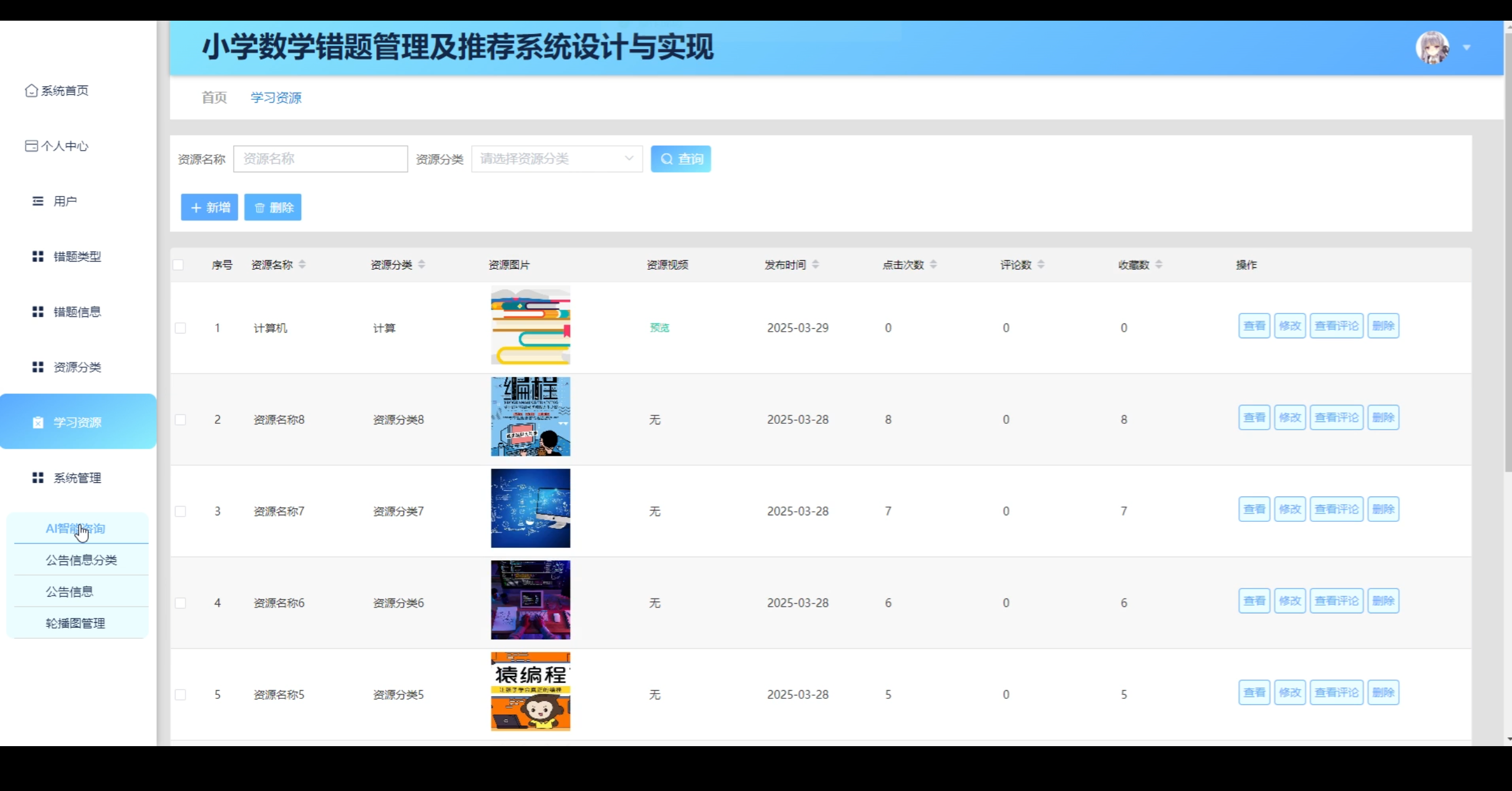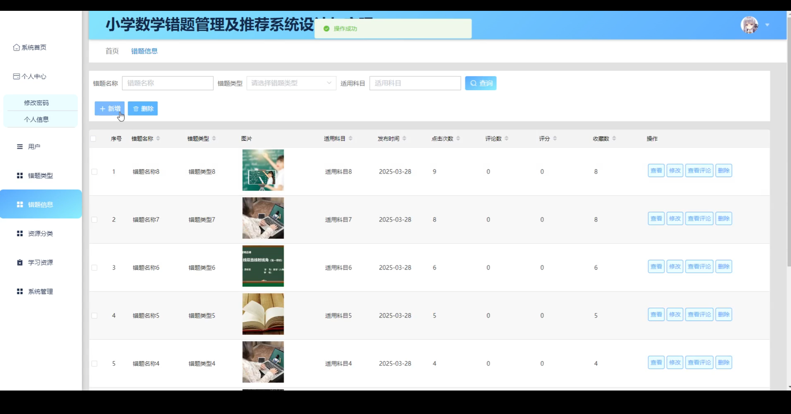 Vue3+Springboot的小学数学错题管理及推荐系统
