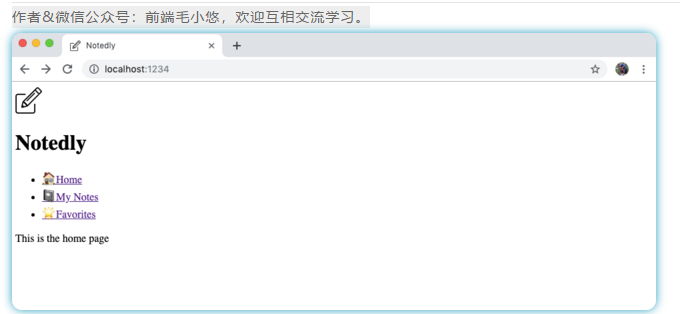 我们的home.js,mynotes.js和favorite.js文件将成为我们单独的页面组件。我们可以为每个文件创建一些初始内容和效果钩子,当用户导航到页面时,它们将更新文档标题。