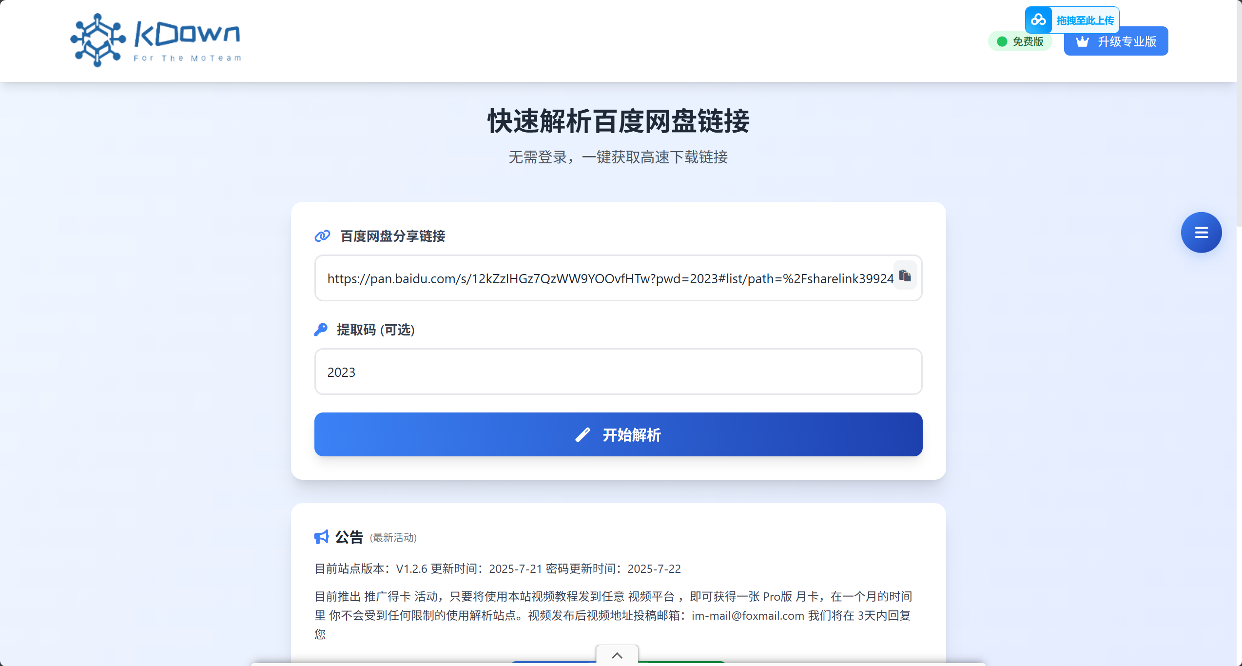 有一个网站叫做KDown,可以解析网盘链接,为什么需要解析呢?因为通过百度网盘分享链接的网站地址是做了隐藏的,换句话说是加密了。所以要通过解析把原来的网址解析出来。