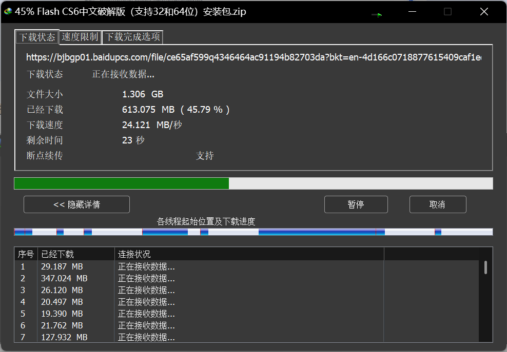 这样就能享受接近30MB/s的恐怖速度。一点多GB的文件,一分钟不到,下载完成,不像那个百度网盘,下载速度几百KB一个文件给我下载七八个小时。