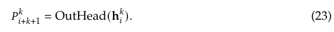 随后利用OutHead()计算第k个预测token的概率分布, ,其中V是指词表的长度: