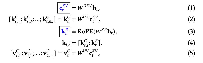 最终kvcache缓存只需要保存标蓝的c和k的位置编码矩阵。