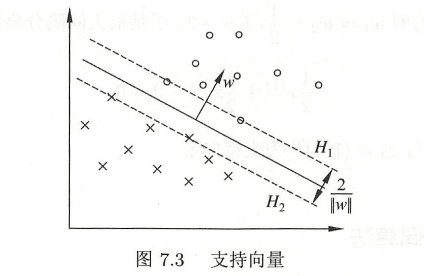 H 1 H_1 H1和 H 2 H_2 H2 叫 间隔边界,二者之间的距离成为间隔,间隔依赖于法向量 w w w,等于 2 ∣ ∣ w ∣ ∣ \dfrac{2}{||w||} ∣∣w∣∣2.