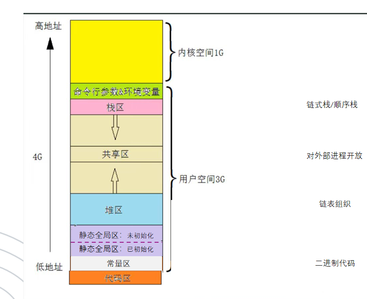 静态/全局区:存储初始化和未初始化的静态(局部暴露)/全局变量(全域暴露)
