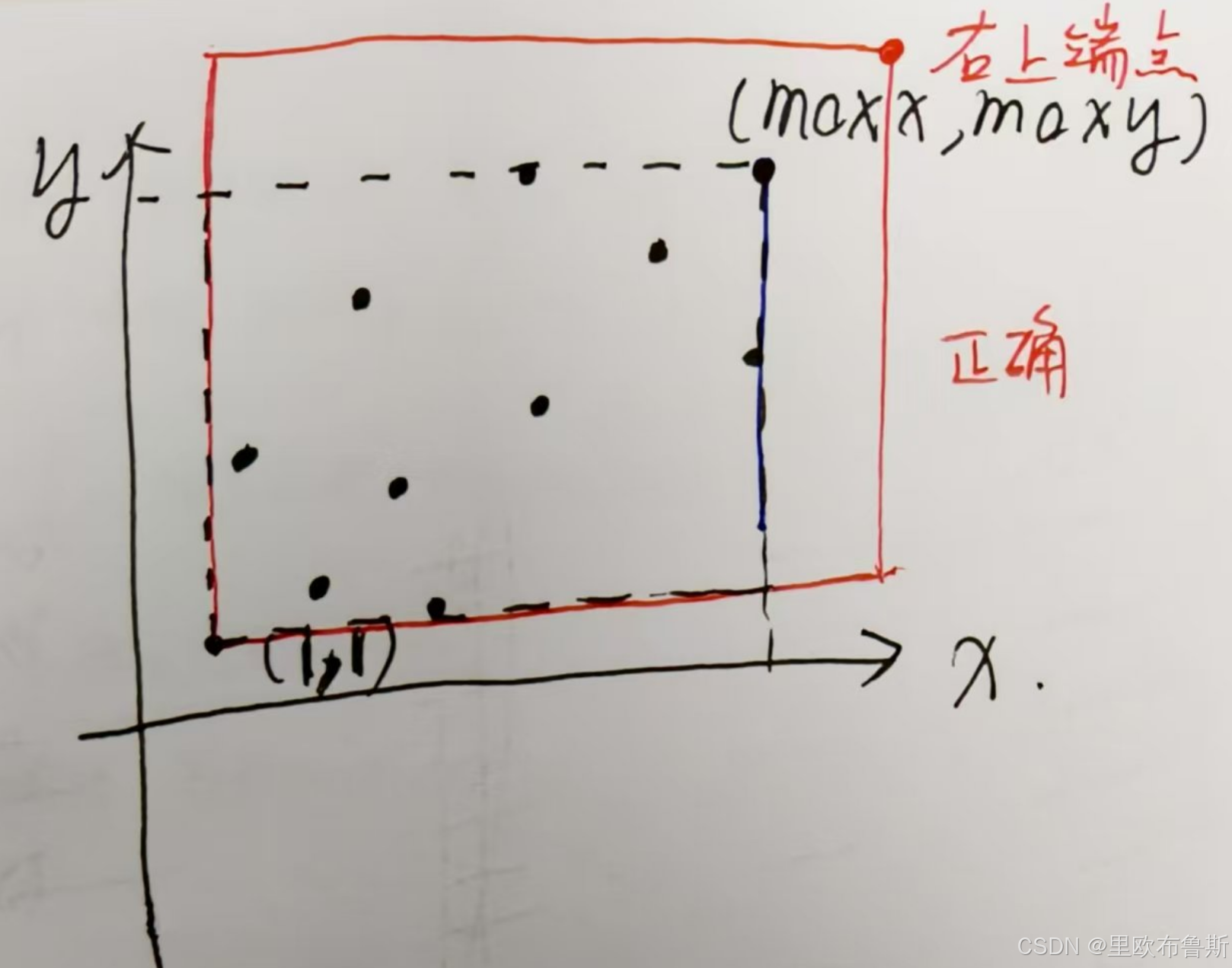 如果炸弹攻击的边长长度,大于了最大的x坐标maxx,最大的y坐标maxy,for循环的初始条件就无法满足,此时统计的答案为0,大家自行想想怎么修改