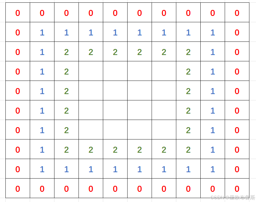 计算方法:初始状态,最外周的人怒气值为0,次外周的人怒气值为1,依次累加
