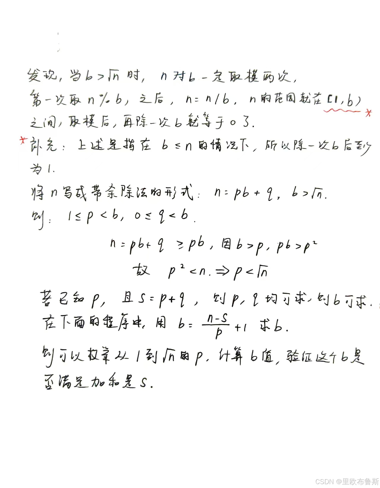 对下面程序细节的一些补充:通过实验枚举所有的b发现,s>n不可能实现,s==n只有当b>n时能实现,更改一些循环的枚举顺序是为了加快速度