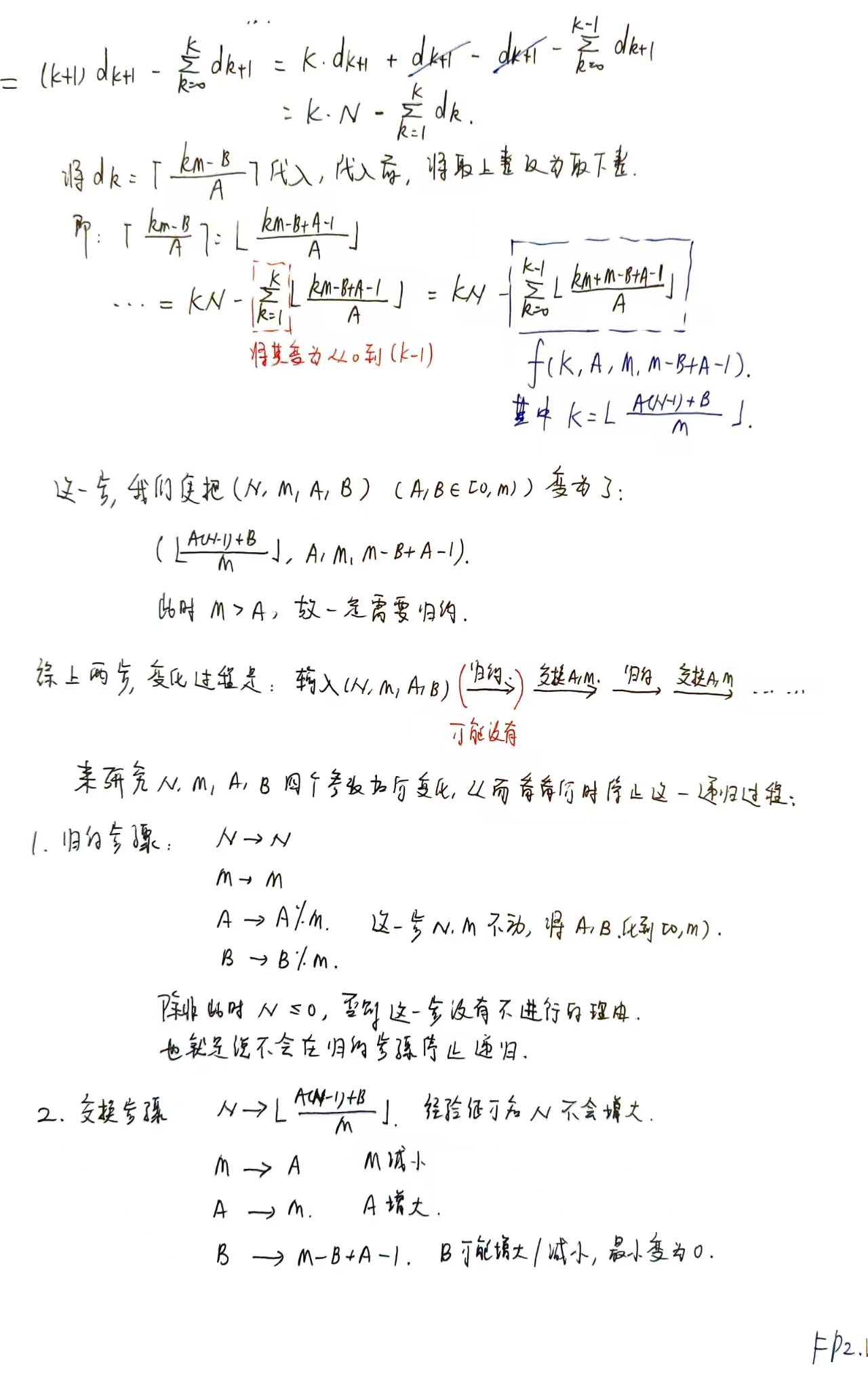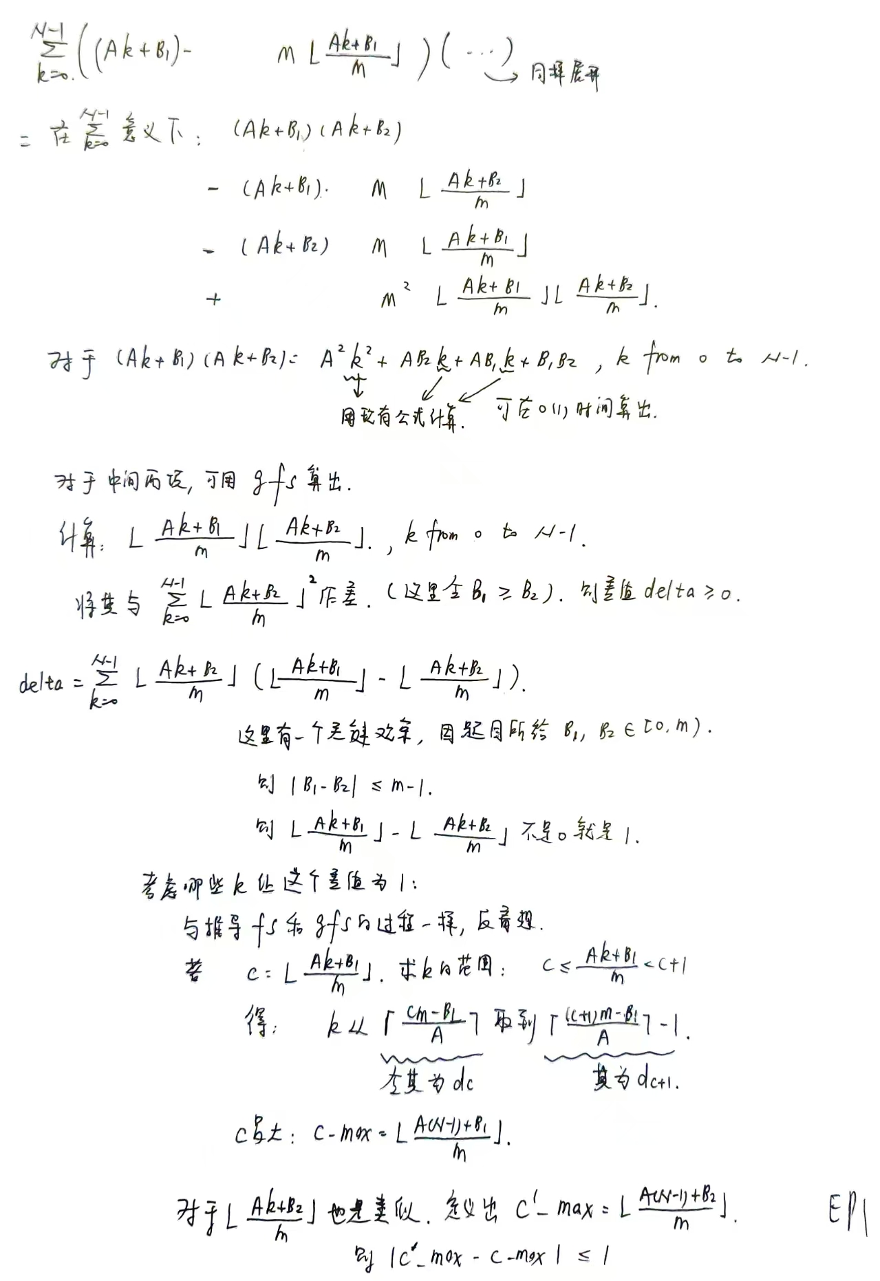 这个问题需要前置知识:下取整和(floor sum),广义下取整和(generalized floor sum)。这属于类欧几里得算法,因为他们的时间复杂度和欧几里得算法一样在log级别。