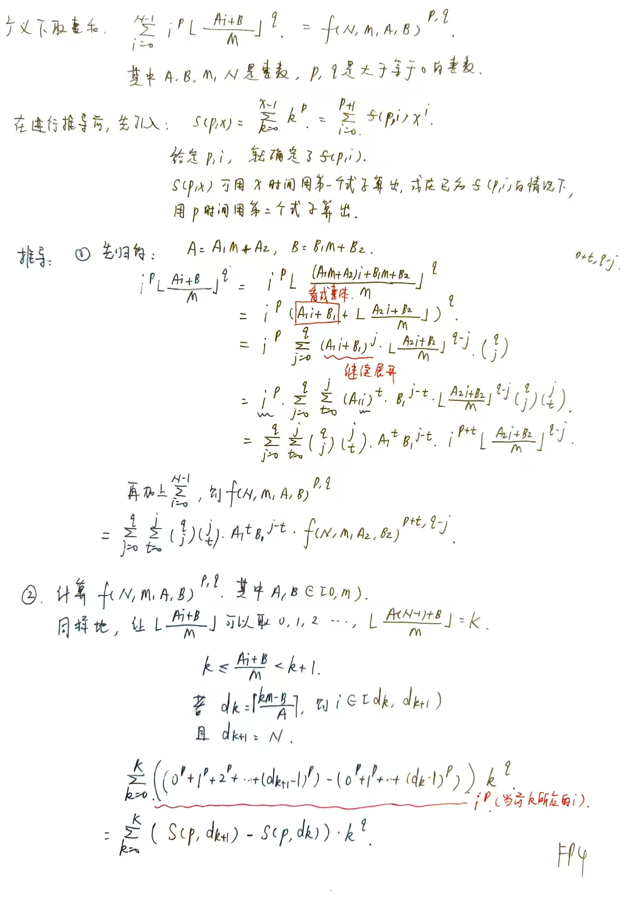 广义下取整和的推导和下取整和思路类似,但需要引入Sp(x)和sp(x)两个函数: