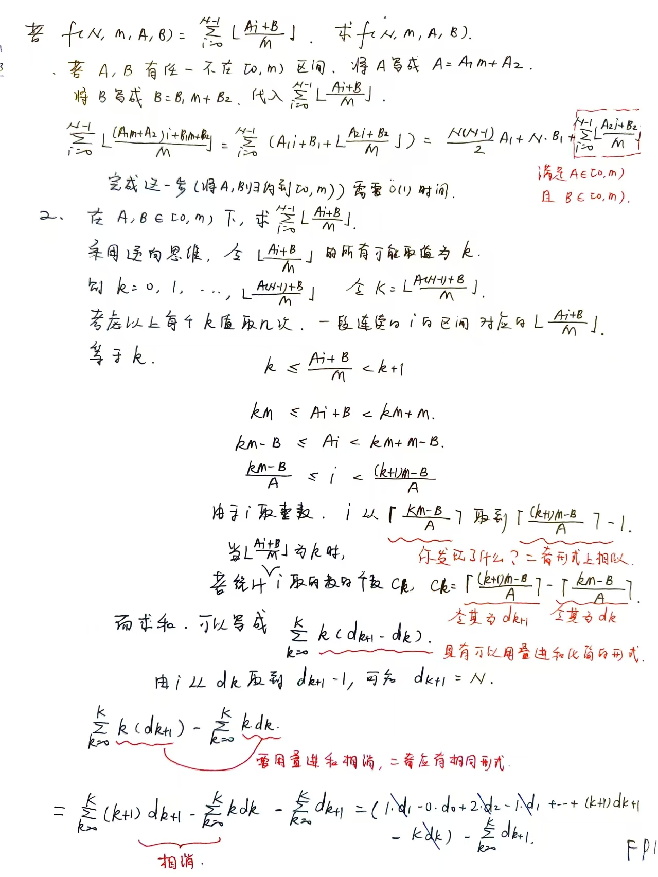 下取整和的推导和结论,结论在最后一张,可以直接去看结论:
