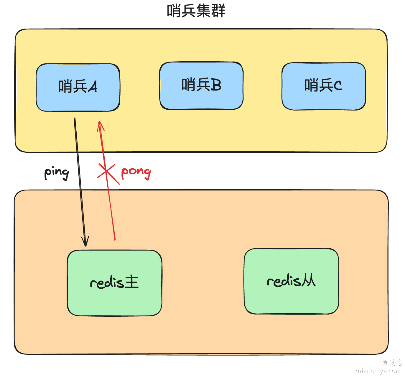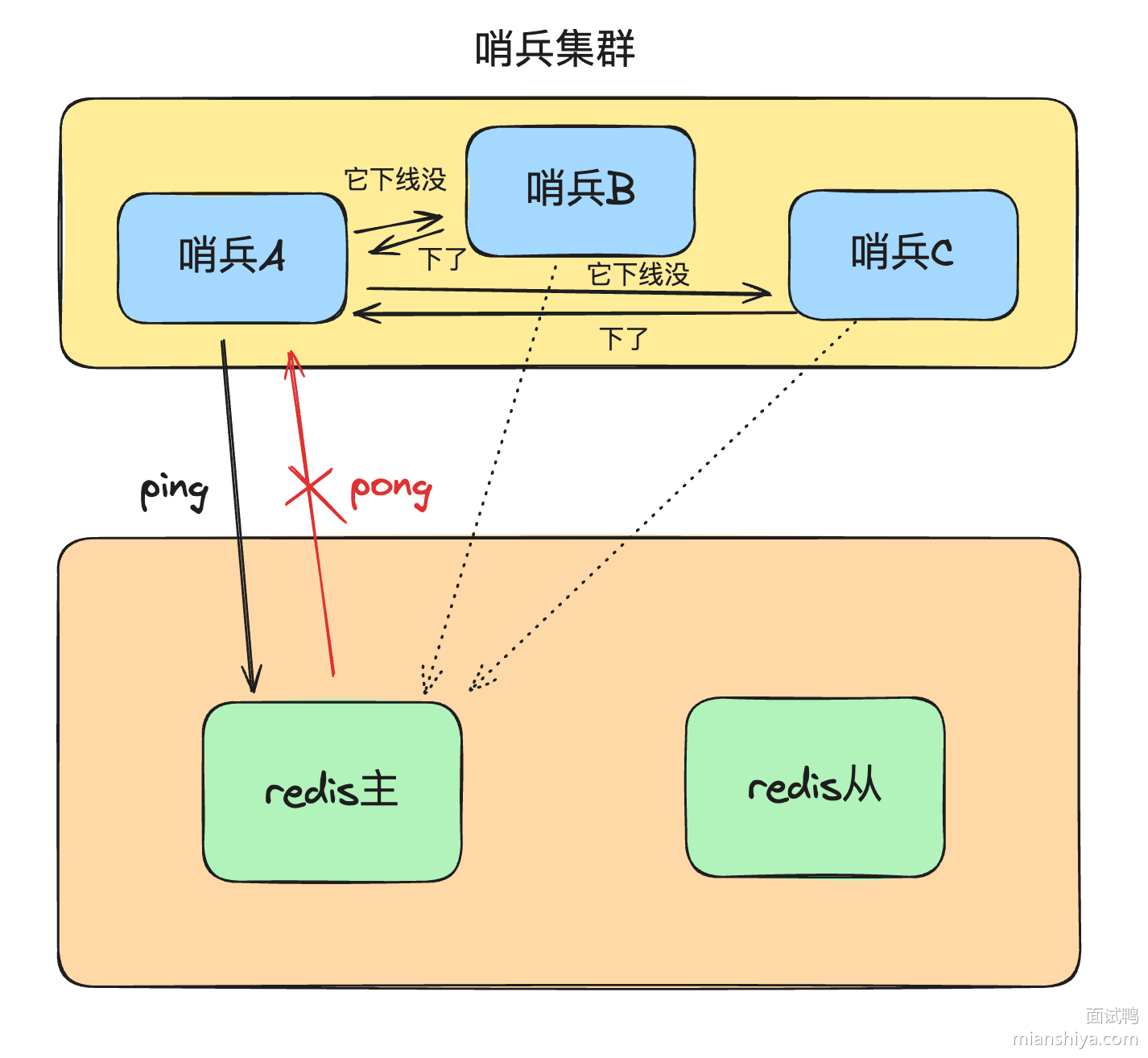 哨兵是如何判断 Redis 中主节点挂了的呢?主要涉及到了两个机制:主观下线以及客观下线。