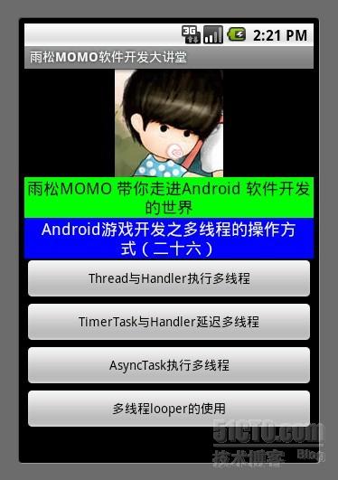 通过例子可以清楚的看到计算出读取100张图片的时间,执行的效率上来说AsyncTask 没有Thread效率块,但是AsyncTask 比Thread更规整,它可是时时的拿到异步线程中进度以及最后的结果集,可以让我们的代码更佳规范。这里说一下 Thread能做到的事AsyncTask 都可以做到 但是AsyncTask 能做到的事Thread 不一定能做到就算勉强做到也很麻烦 。我给大家的建议是如果处理大量的异步操作就用AsyncTask 如果少部分的则使用Thread