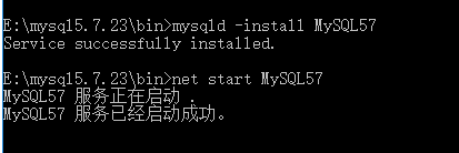 执行mysqld –install MySQL57安装服务(install后面是服务的名字,我们这里以MySQL57作为mysql5.7的服务名)net start MySQL57启动MySQL服务。