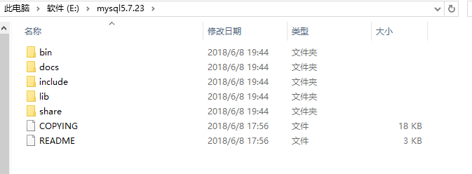 将压缩包放在一个合适的盘进行解压,我这里放在了E盘,解压后建议将文件夹重命名为mysql5.7.23。