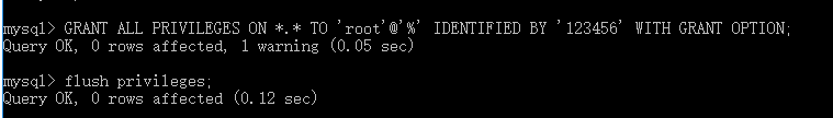 若需要配置root用户可以远程访问,则可以执行以下语句: