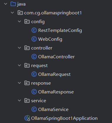 OllamaService.java 实现调用逻辑,包含普通响应和流式响应两种方式。